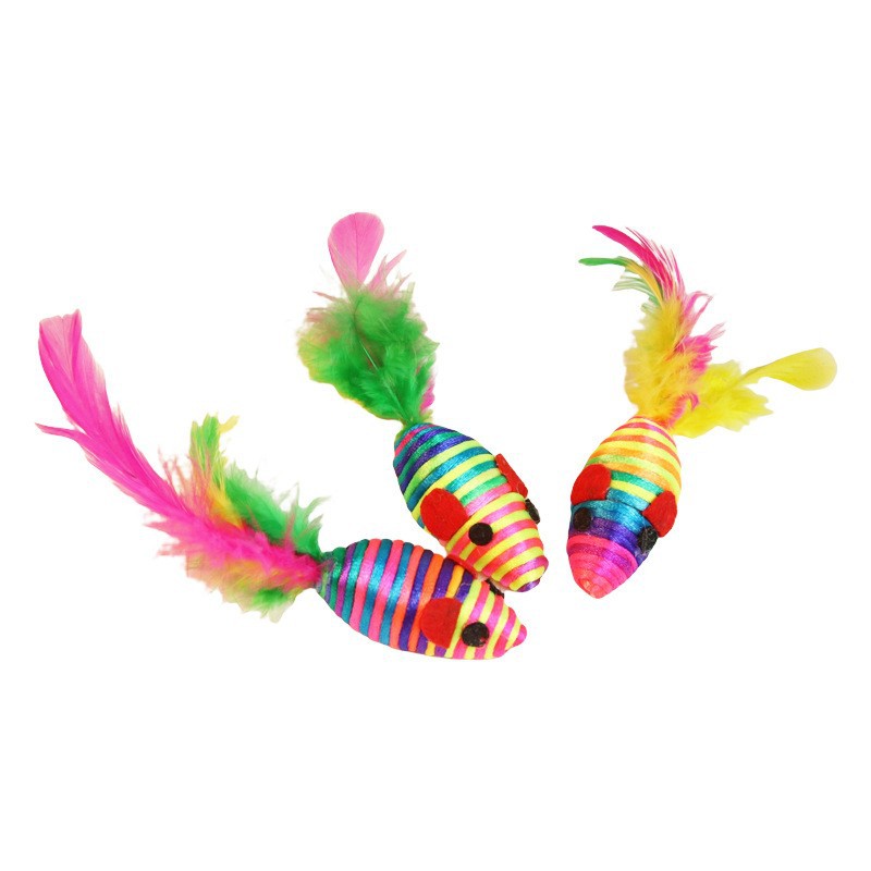 고양이 장난감 보컬 마우스 시뮬레이션 봉제 컬러 깃털 테이 고양이 마우스 애완 동물 용품 셀프 안녕 고양이 장난감