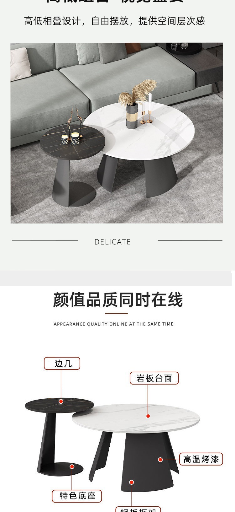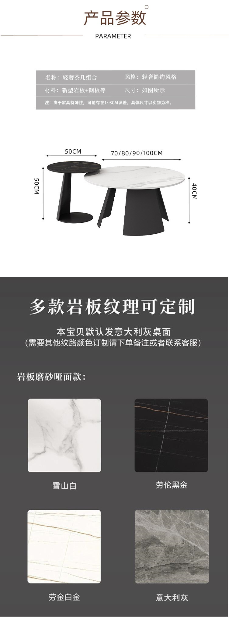 이탈리아 미니멀리스트 록 플레이트 커피 테이블 조합 호텔 크리에이티브 라운드 사이드 테이블 작은 아파트 거실 개폐식 커피 테이블