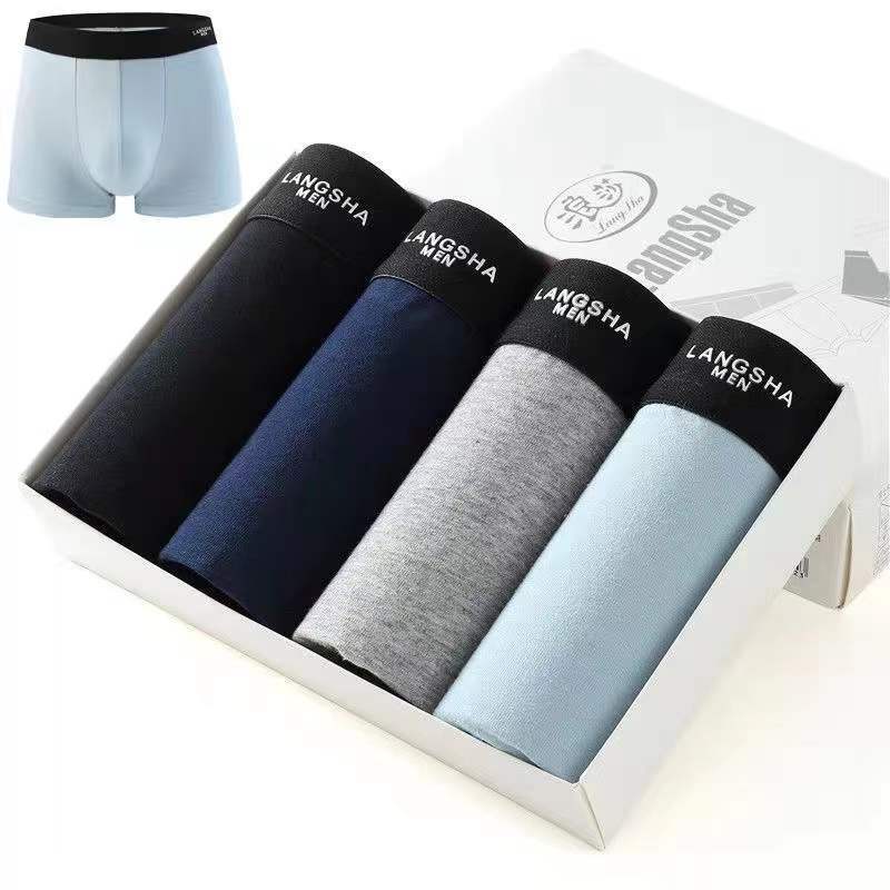 Langsha 4 피스 남성 속옷 복서 모든 경기 단색 면 통기성 편안한 중간 허리 반바지 복서 바지