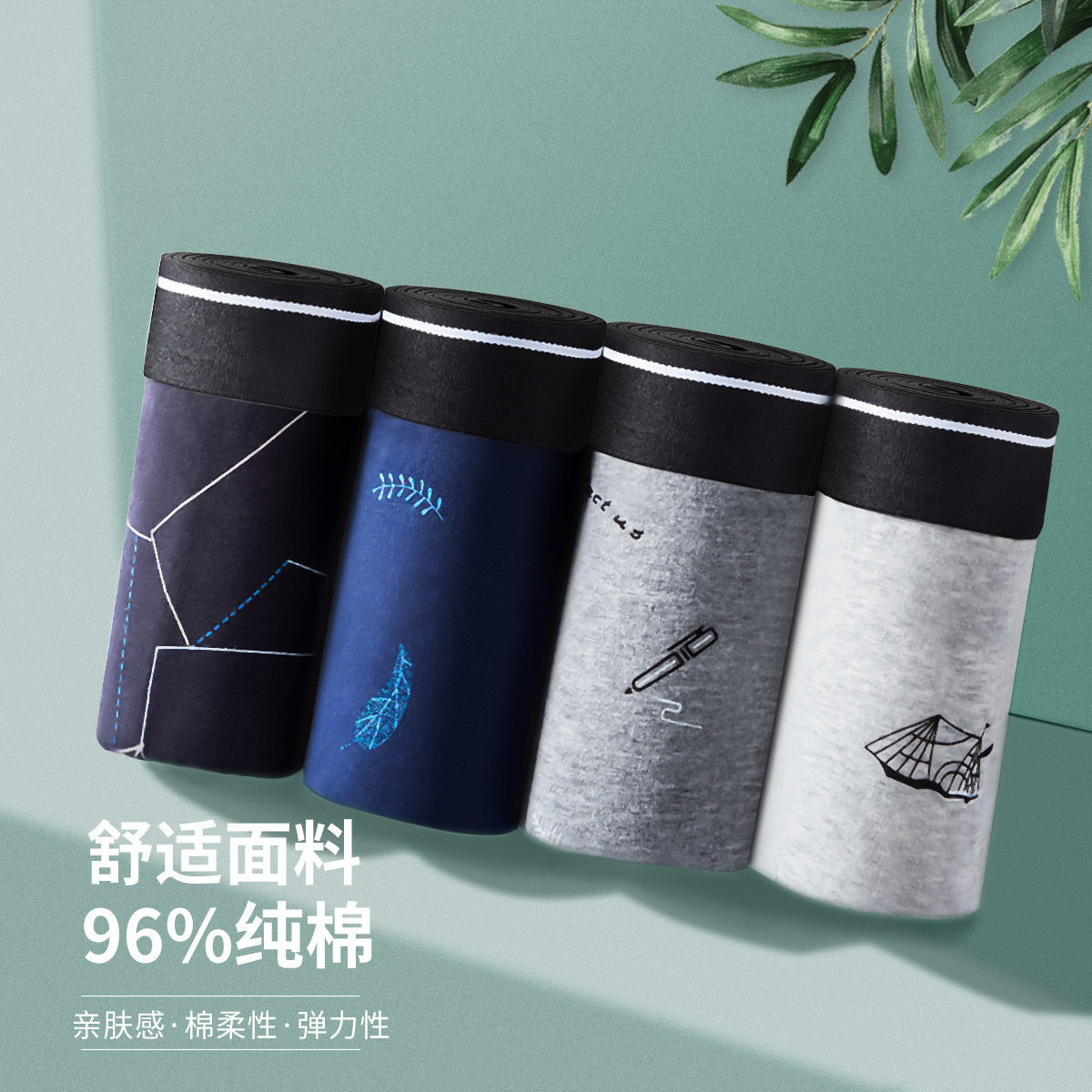 4 팩 Langsha 남성 속옷 남성용 면 가랑이 복서 반바지 복서 반바지 미드 웨이스트 프린트 속옷스토어 가기