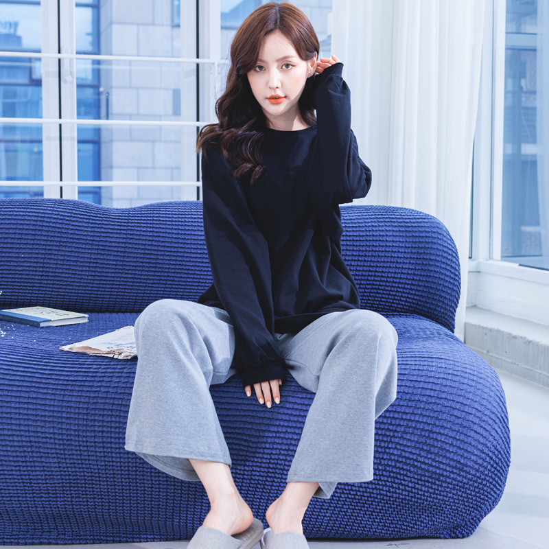 봄과 가을 면 잠옷 여성용 라운드 넥 랜턴 슬리브 홈 의류 캐주얼 느슨한 슬리밍 겉옷을 입고 면 투피스 세트