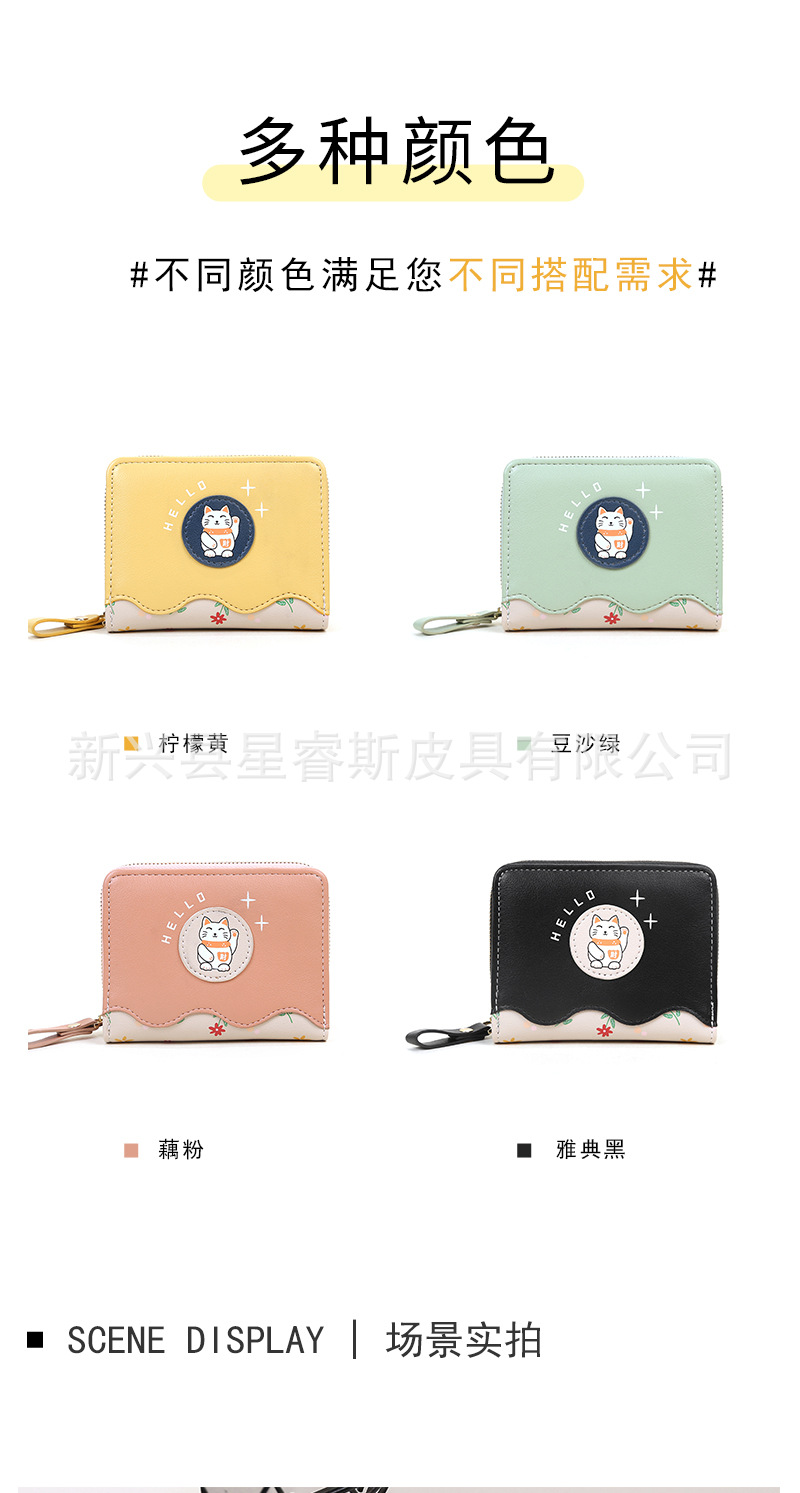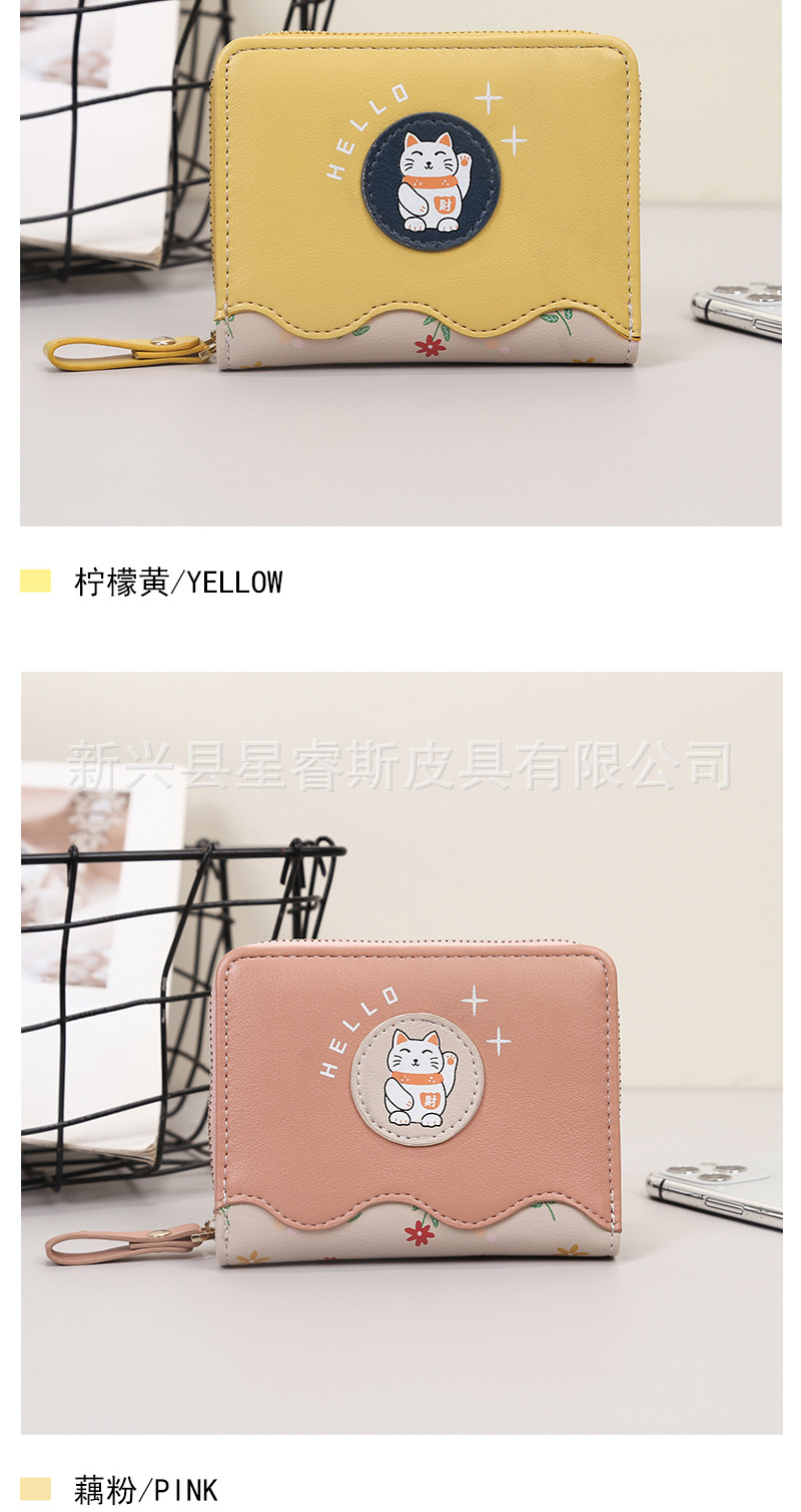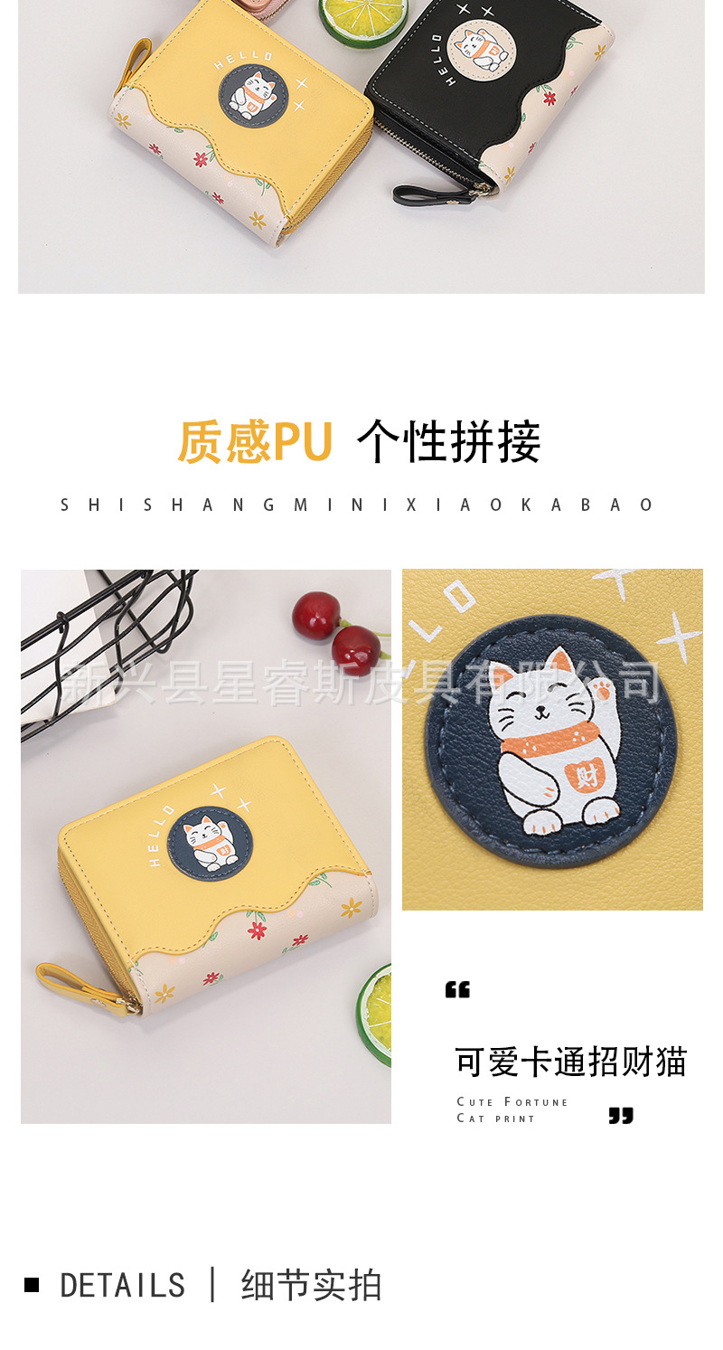 새로운 여성 지갑 짧은 귀여운 만화 pu 동전 지갑 여자의 행운의 고양이 학생 지갑 카드 가방 지갑스토어 가기