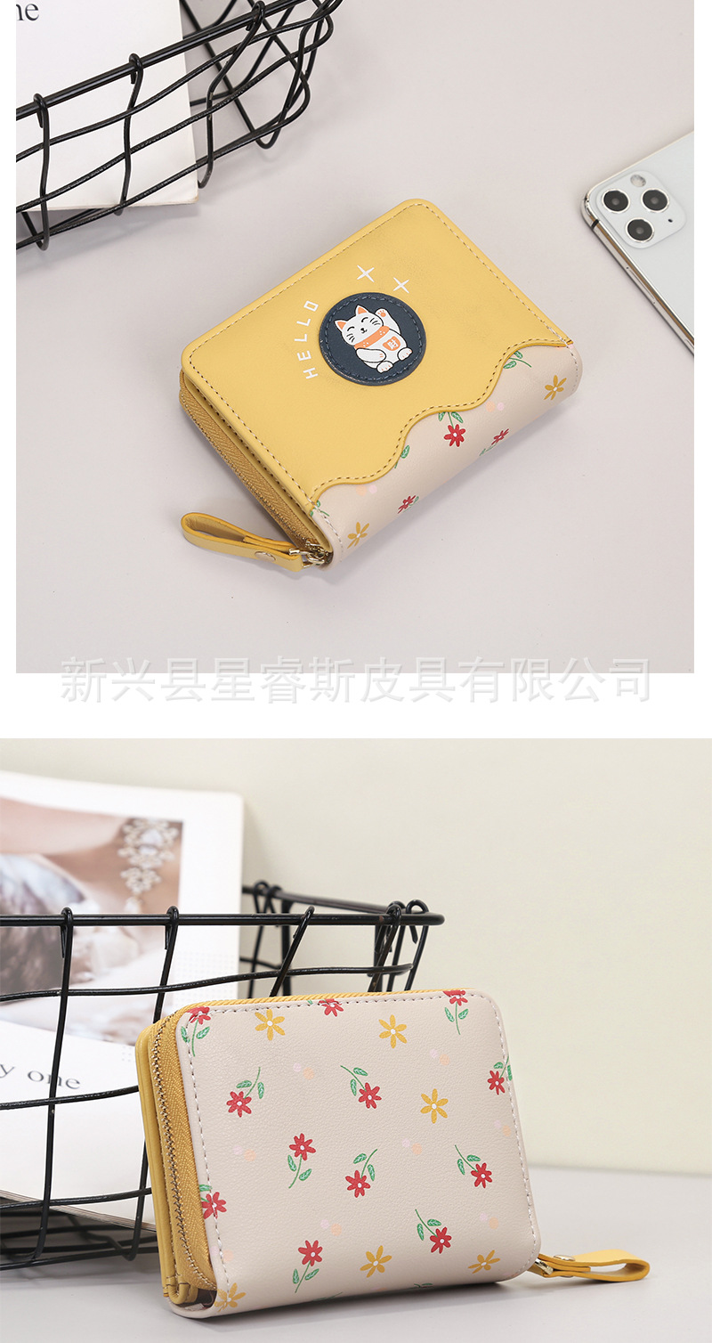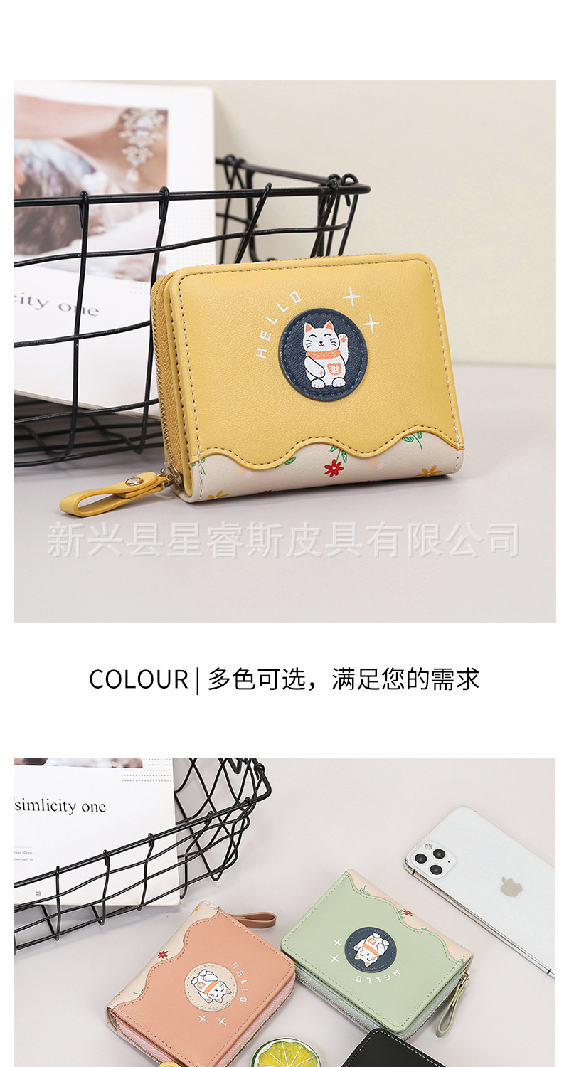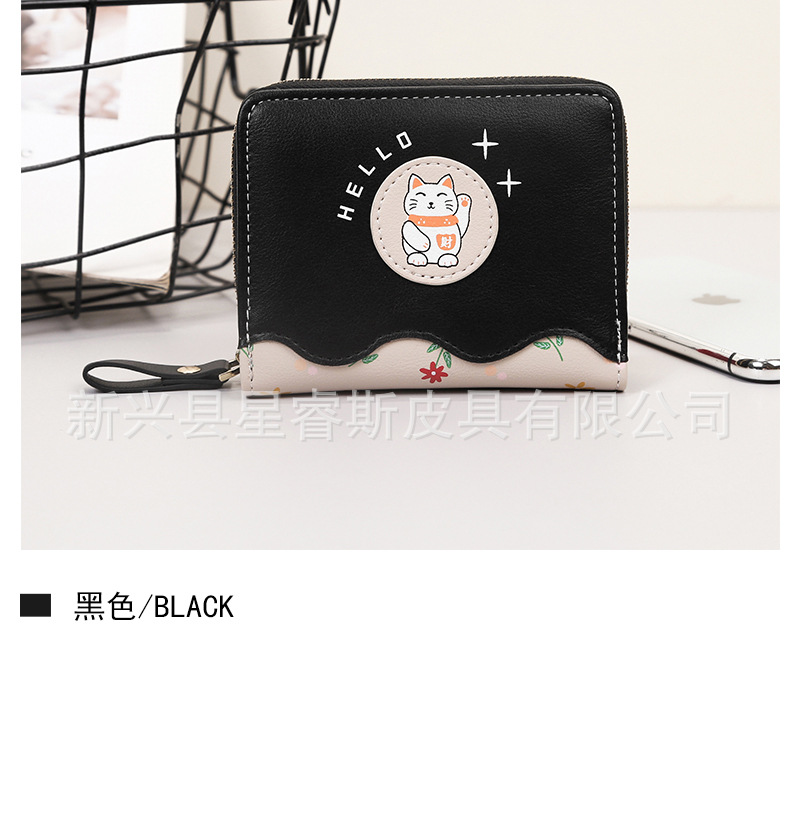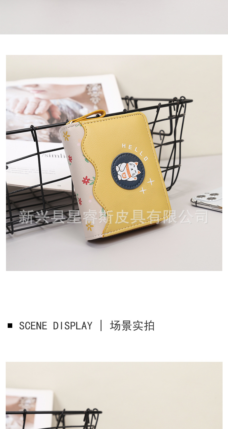 새로운 여성 지갑 짧은 귀여운 만화 pu 동전 지갑 여자의 행운의 고양이 학생 지갑 카드 가방 지갑스토어 가기