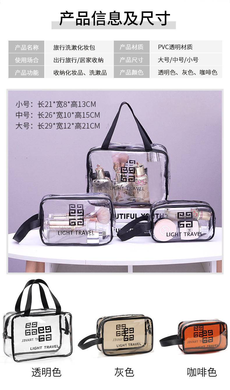 뜨거운 판매 투명 화장품 가방 대용량 세척 가방 PVC 방수 휴대용 보관 가방 여행 보관 가방 화장품 가방스토어 가기