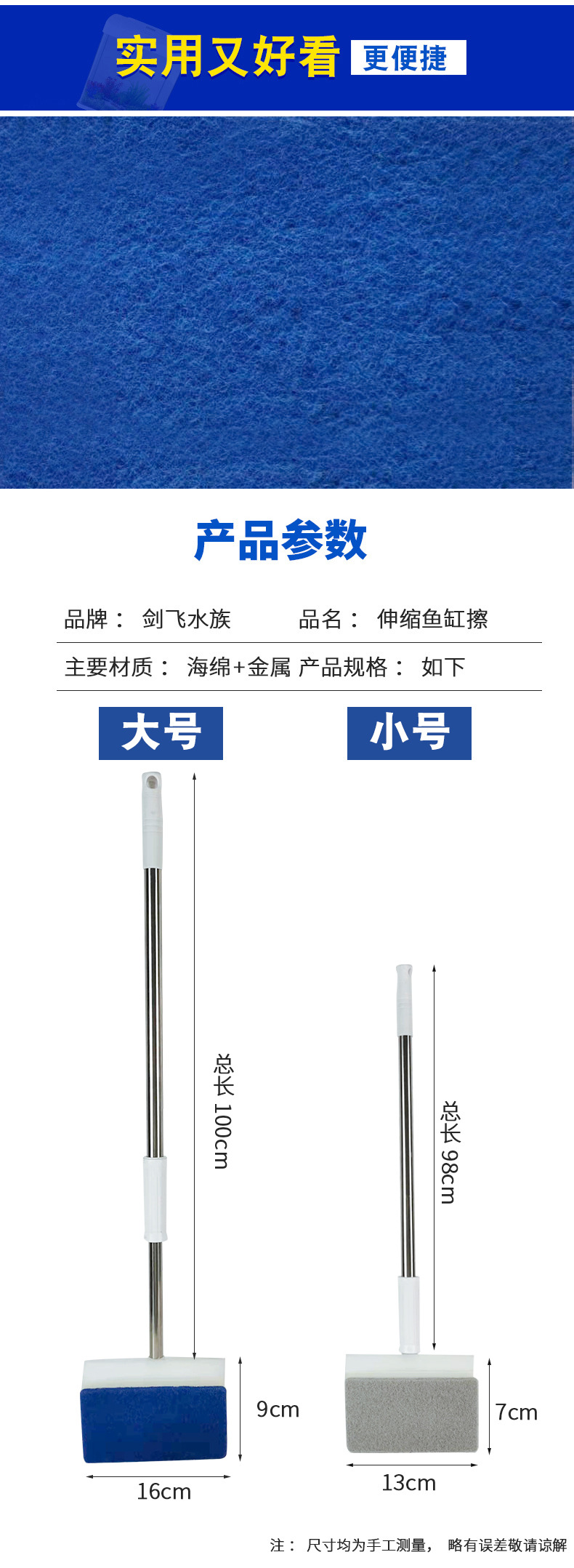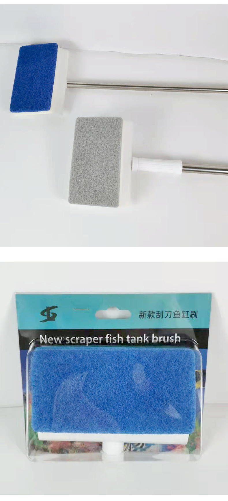 어항 브러시 어항 내부 벽 청소 도구 유리 조류 스크레이퍼 두꺼운 개폐식 수족관 긴 손잡이 브러시 어항 브러시스토어 가기