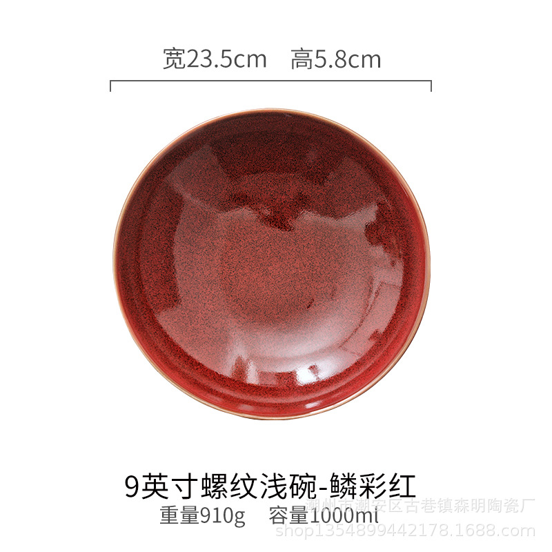 • 9inch 스레드 얕은 그릇 스케일 색상 빨간색