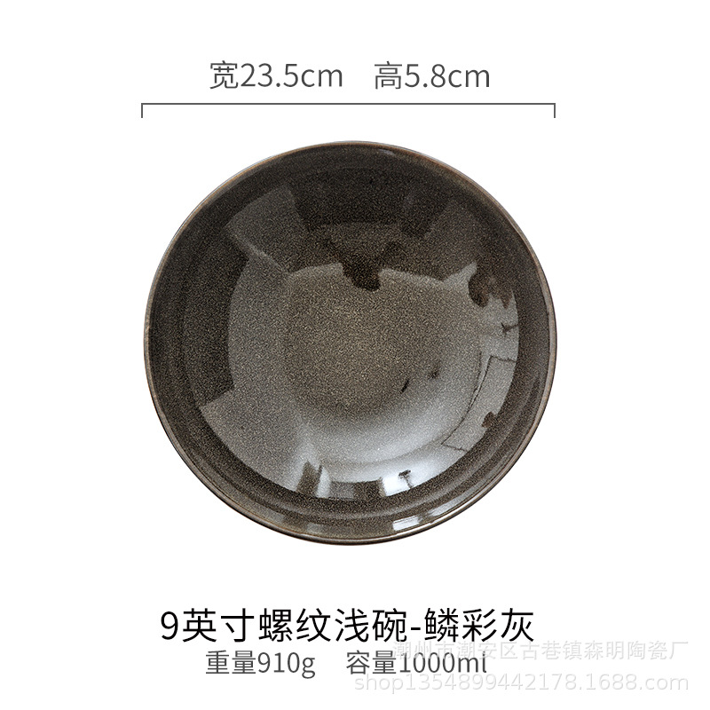 • 9inch 스레드 얕은 그릇 스케일 색상 회색