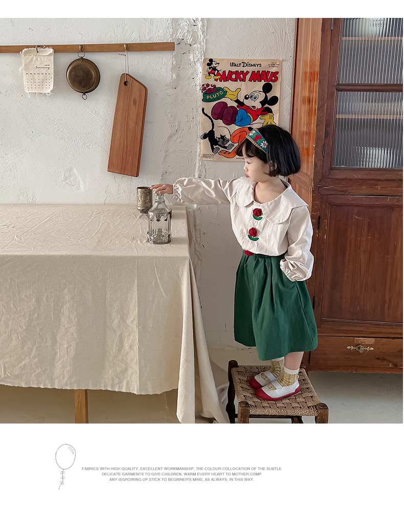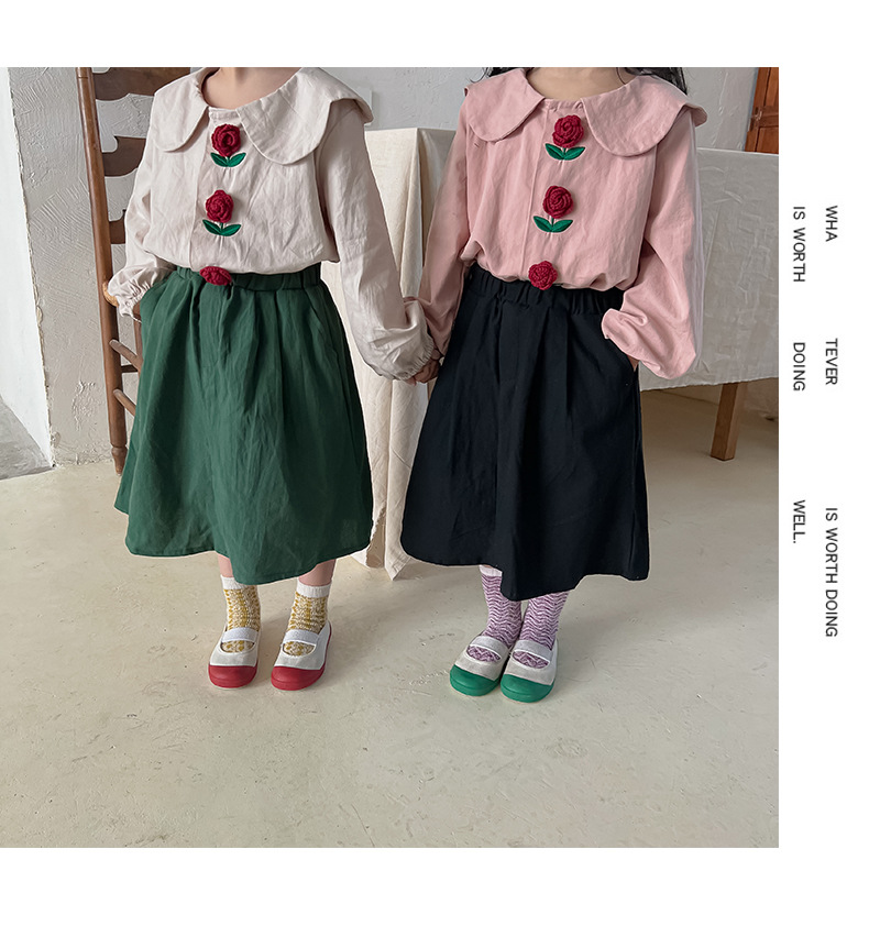 2024 봄 신상품 두두 크림 여아 스커트, 세련된 면마 소재 아동 스커트, 외출용, 공장 직판스토어 가기
