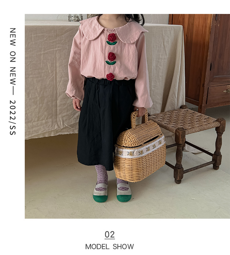 2024 봄 신상품 두두 크림 여아 스커트, 세련된 면마 소재 아동 스커트, 외출용, 공장 직판