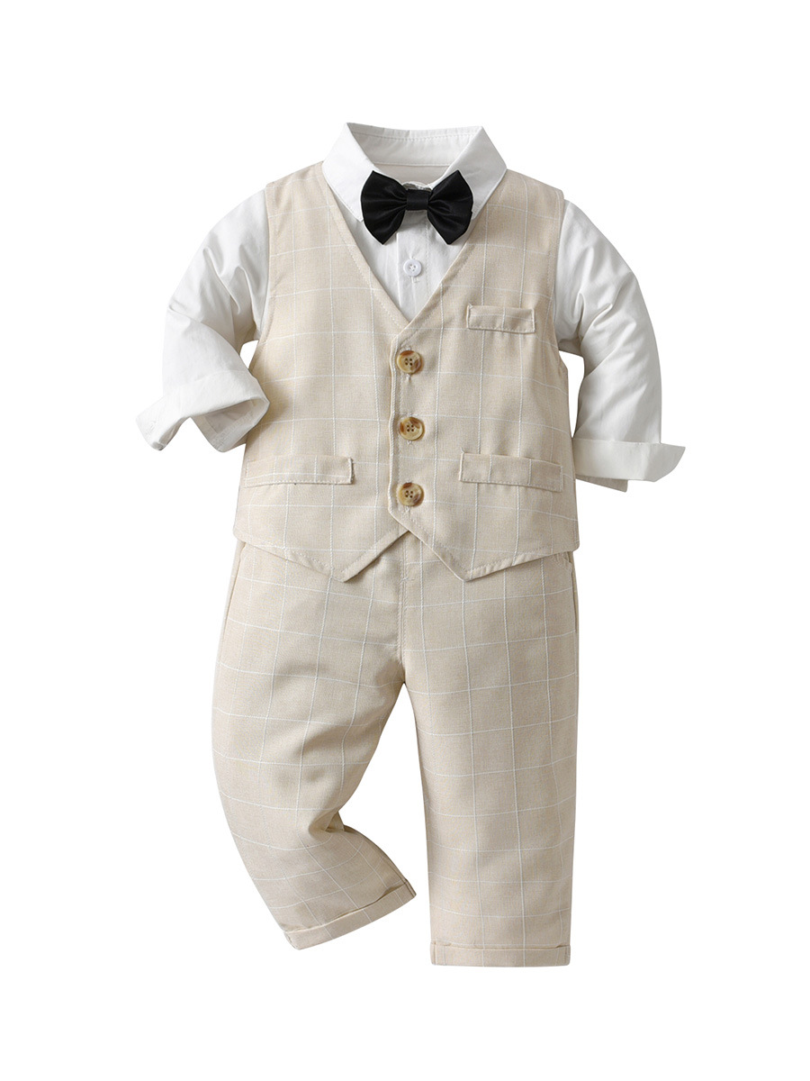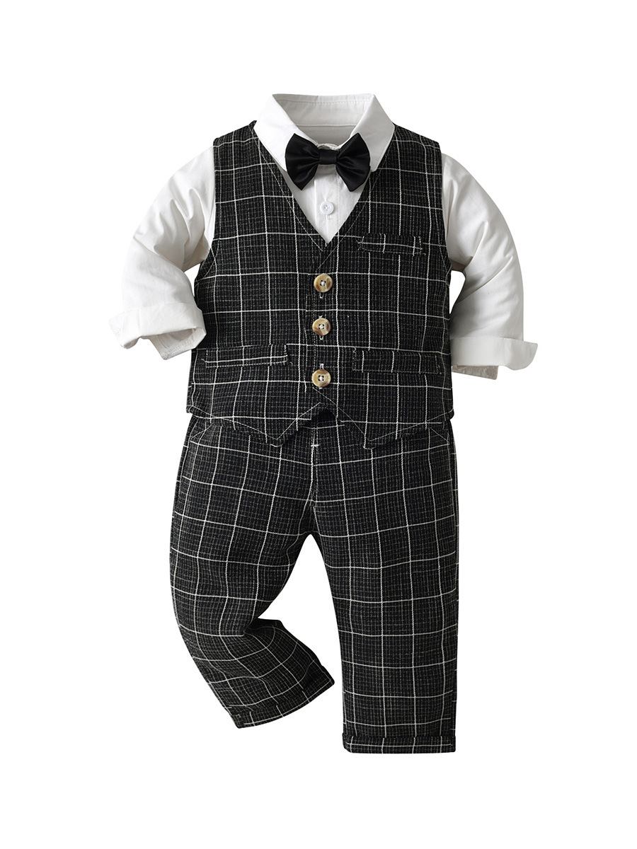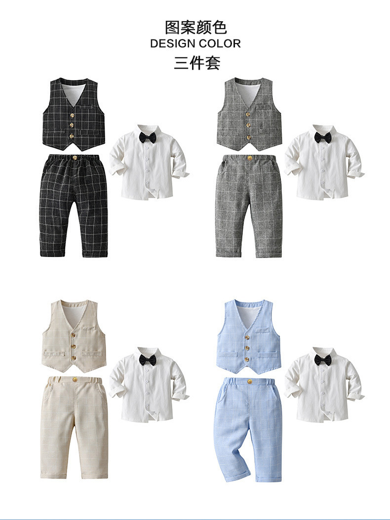 대외 무역 아동 의류 도매 영국 신사 격자 무늬 3 피스 아동 의류 봄과 가을 긴 소매 코트 소년 세트