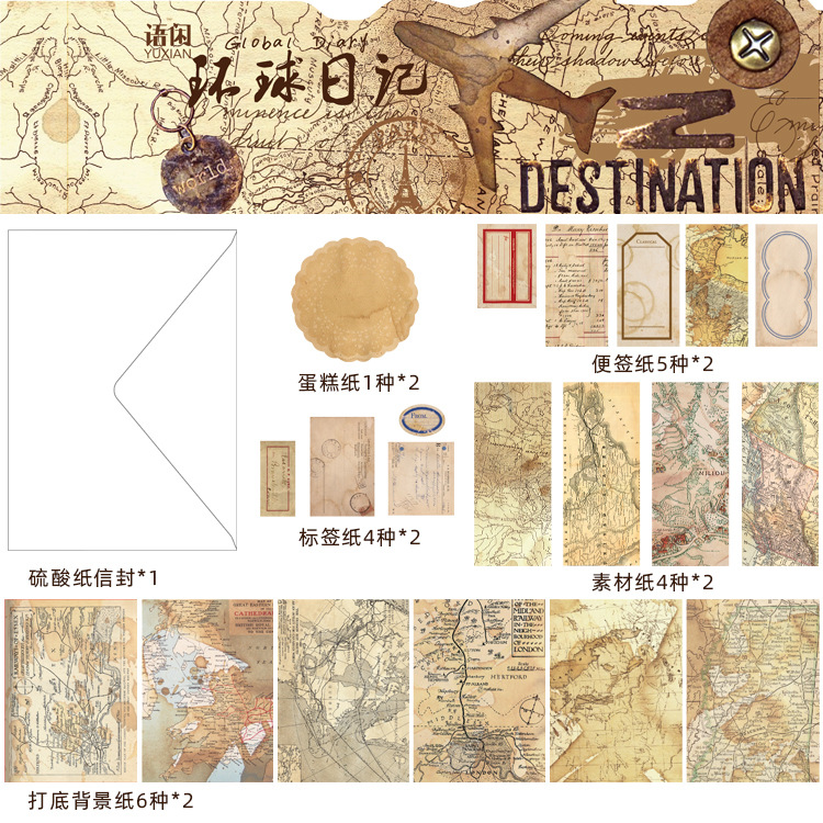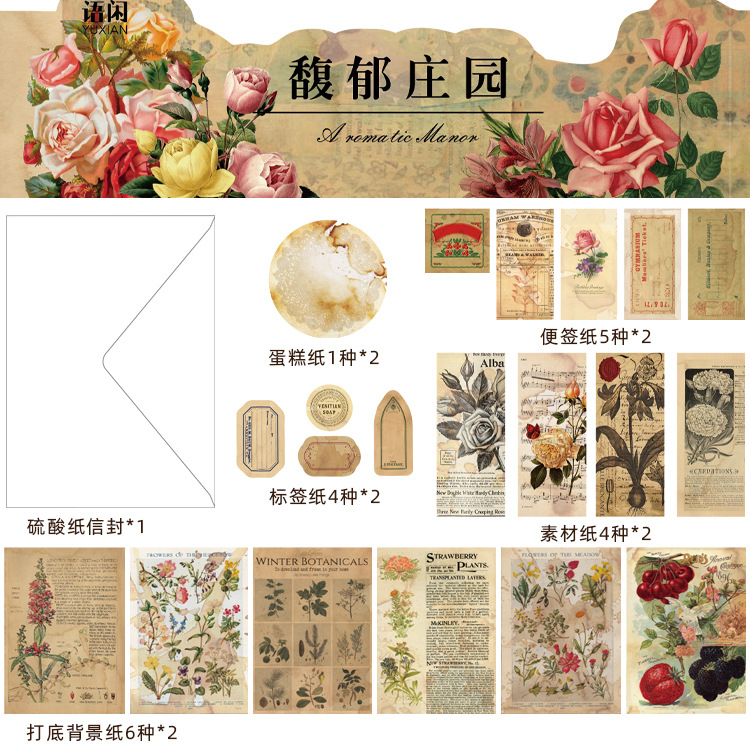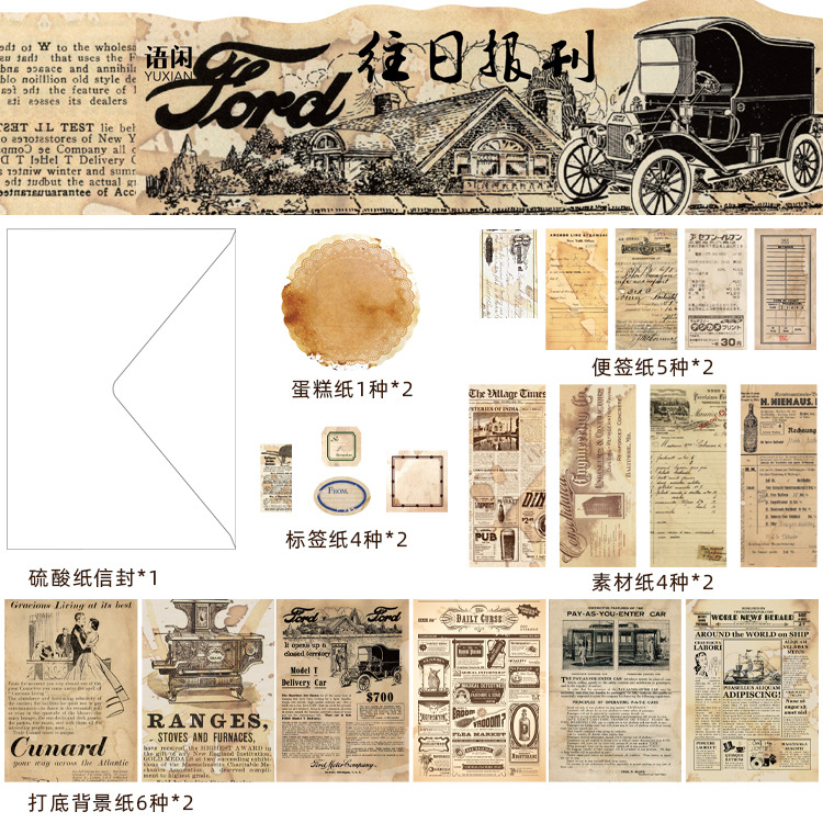언어 유휴 재료 종이 시간 수집 시리즈 복고풍 문학 및 예술 손 계정 노트 장식 백킹 용지 40-6스토어 가기