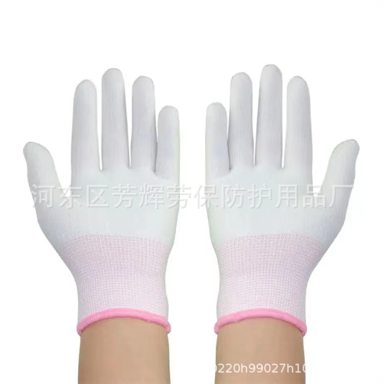 나일론 PU 스트라이프 핑거 코팅 장갑 13 핀 얇은 흰색 나일론 손바닥 코팅 장갑 전자 먼지 없는 정전기 방지 장갑스토어 가기