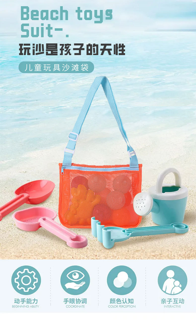 여름 어린이 해변 가방 장난감 조개 정리 망가방 접이식 수납 가방 해변 핸드백 숄더 수납 가방