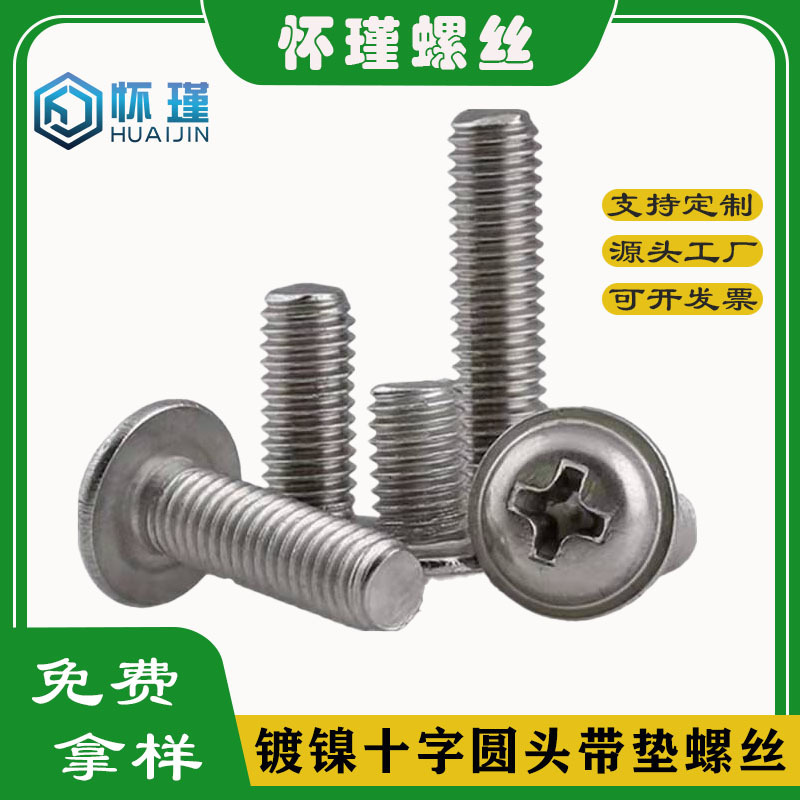 공장 도매 M1.7-M5 탄소강 니켈 도금 PWM 크로스 라운드 헤드 헤드 기계 나사가있는 자체 가스켓 나사스토어 가기