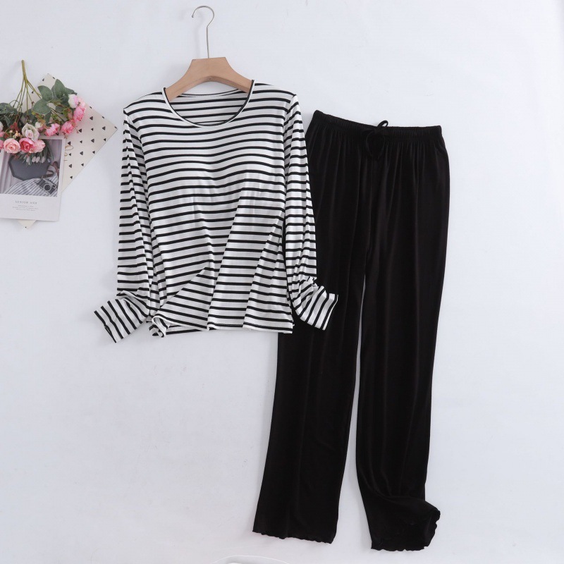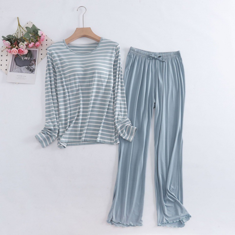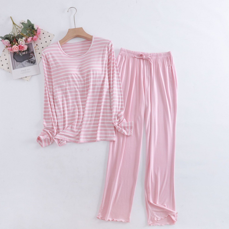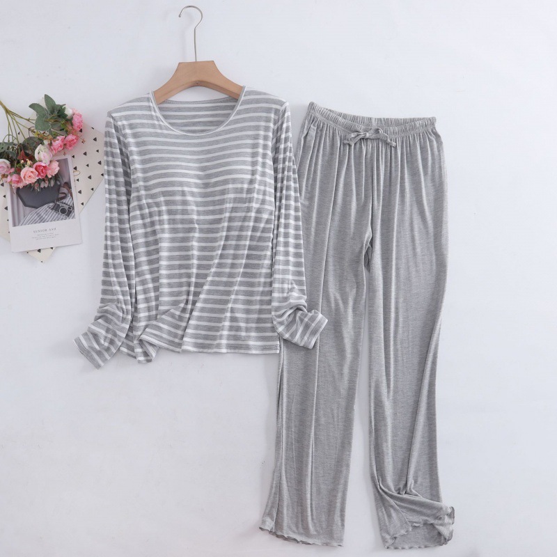 여자 모달 컵 올인원 가정복 투피스 세트 여름 얇은 원사 염색 긴팔 단색 바지 세트스토어 가기