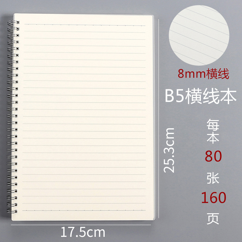 PP 젖빛 투명 커버 코일 북 A5A6B5 수평 도트 매트릭스 사각 무지 노트북 도매
