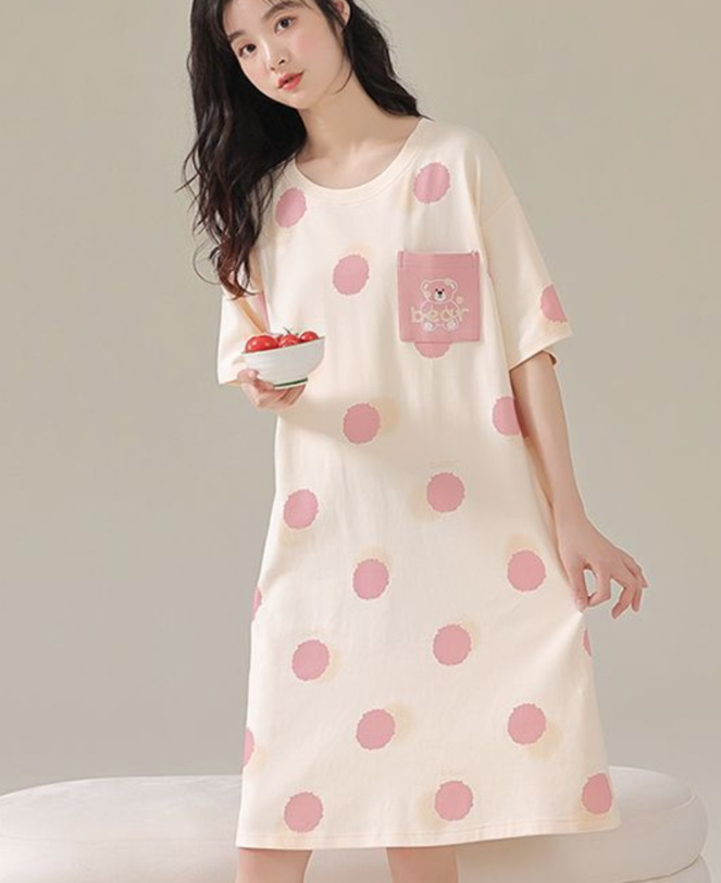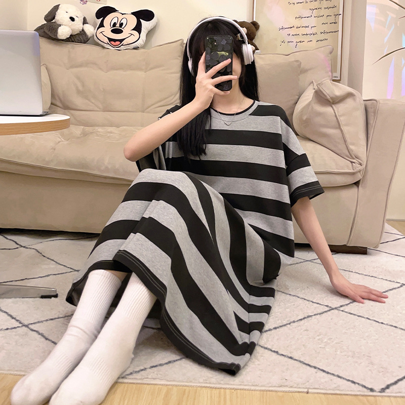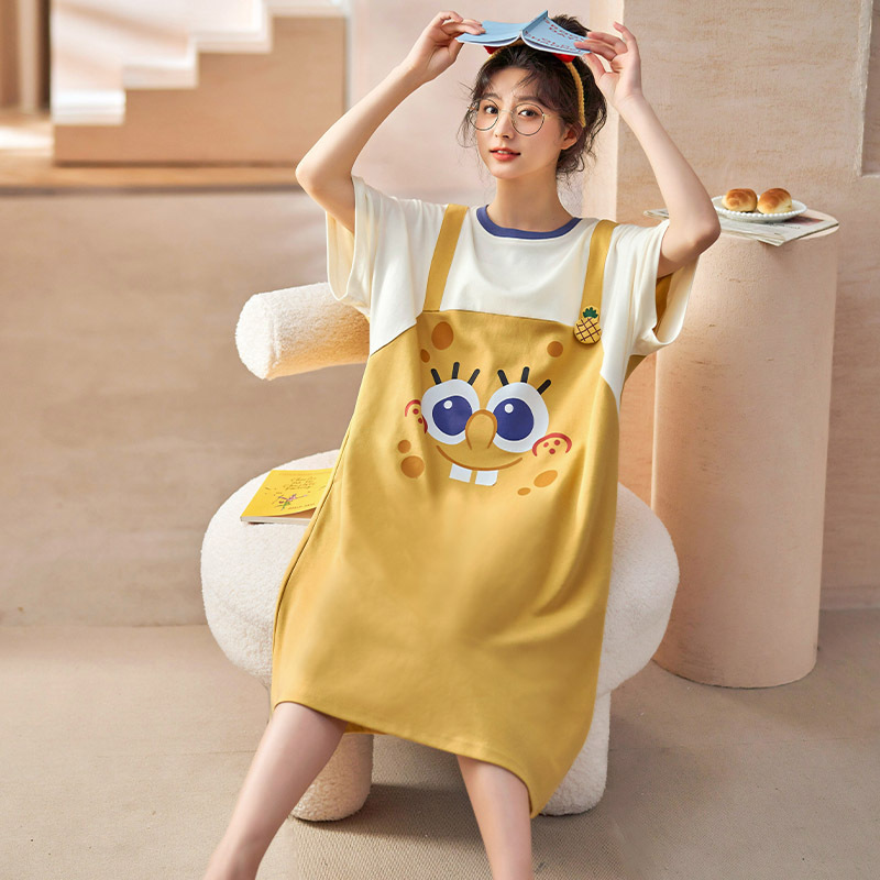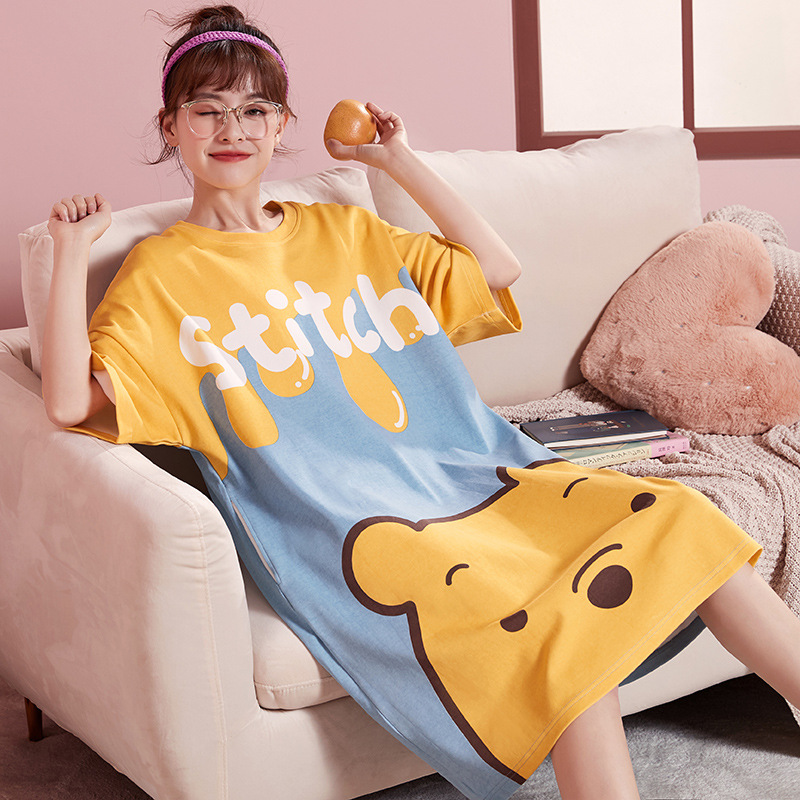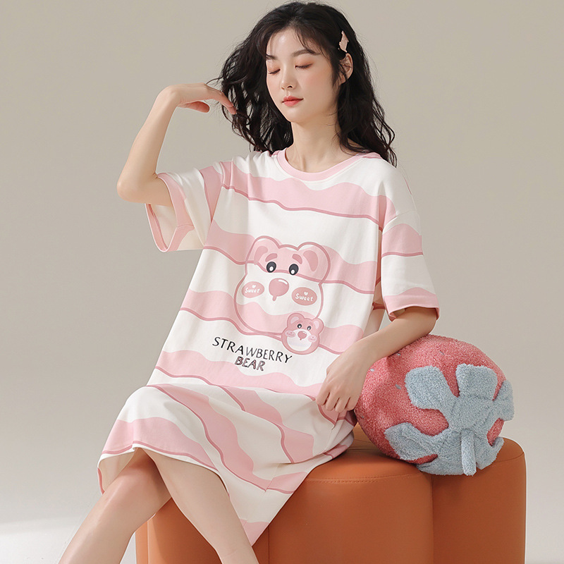 여름 새 여성 잠옷, 귀여운 반팔 잠옷, 만화 대형 여름 얇은 롱 스커트, 집 옷, 야외에서 착용 가능스토어 가기