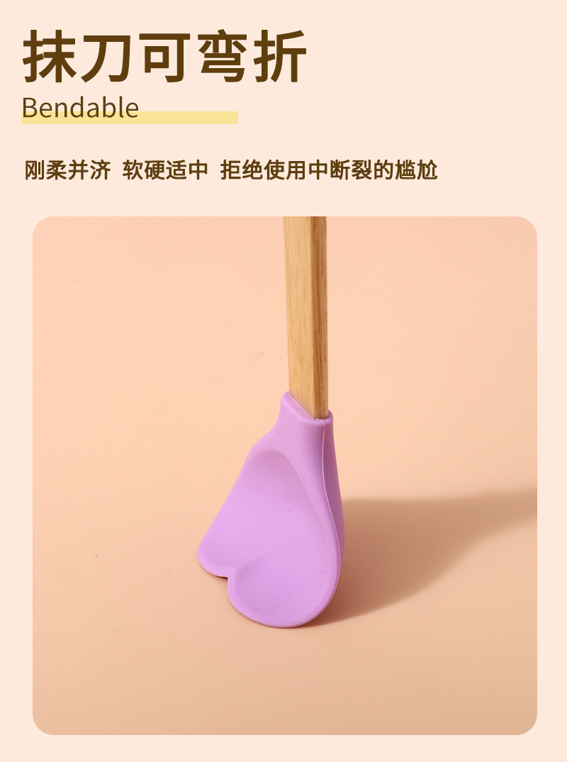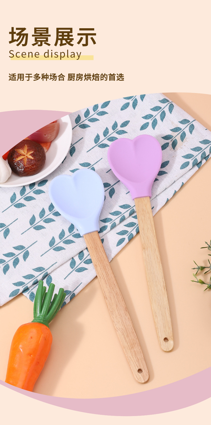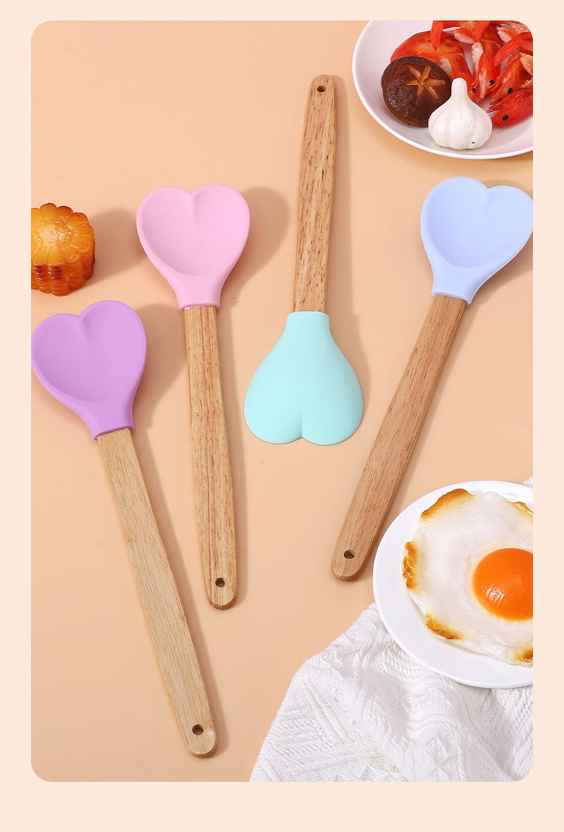 사랑 실리콘 주걱 높은 색상 값 긴 손잡이 혼합 숟가락 나무 손잡이 실리콘 주걱 주방 용품 베이킹 크림 주걱