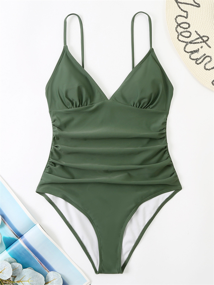 유럽 및 미국 신상 아마존 단색 수영복 여성용 끈 없는 등 노출 수영복, 즉시 배송 가능, 도매 가능