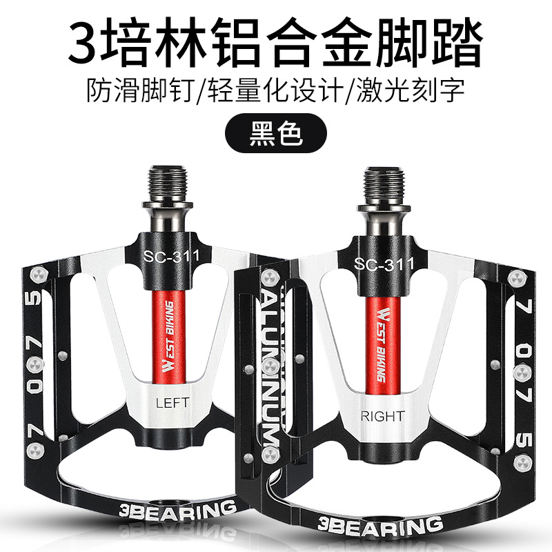 WEST BIKING 산악 자전거 페달 경량 페달 자전거 알루미늄 합금 3 Peilin 페달 승마 장비