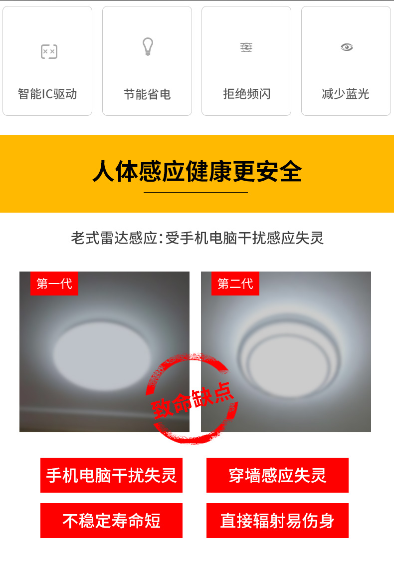 음향 광학 LED 레이더 인체 유도 천장 램프 모듈 복도 통로 재건 램프 패널 램프 패널 음성 제어 심지스토어 가기