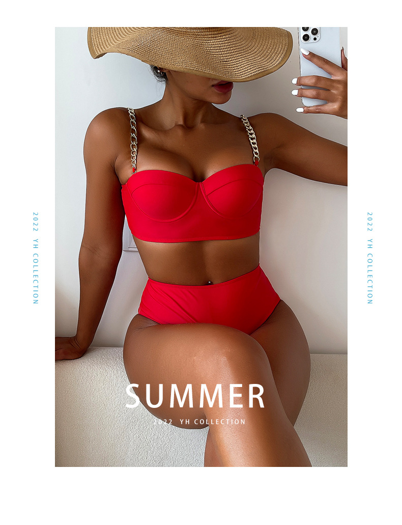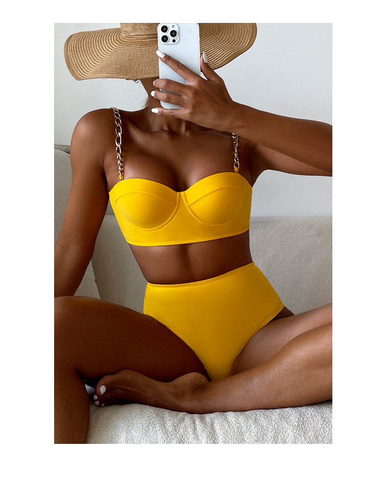 새로운 단색 유럽과 미국 비키니 수영복 섹시 스플릿 하이 웨이스트 배꼽 비키니 수영복 여성 크로스 보더 도매