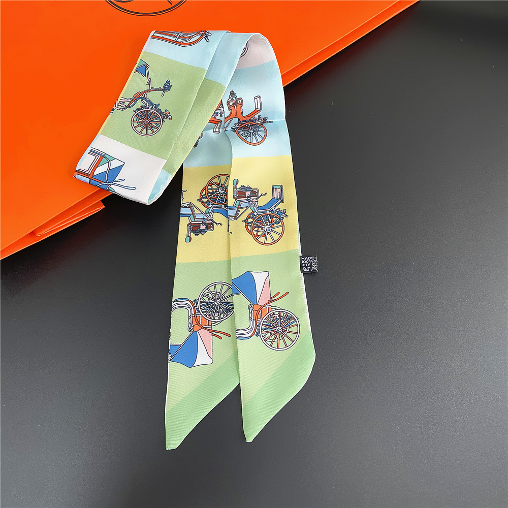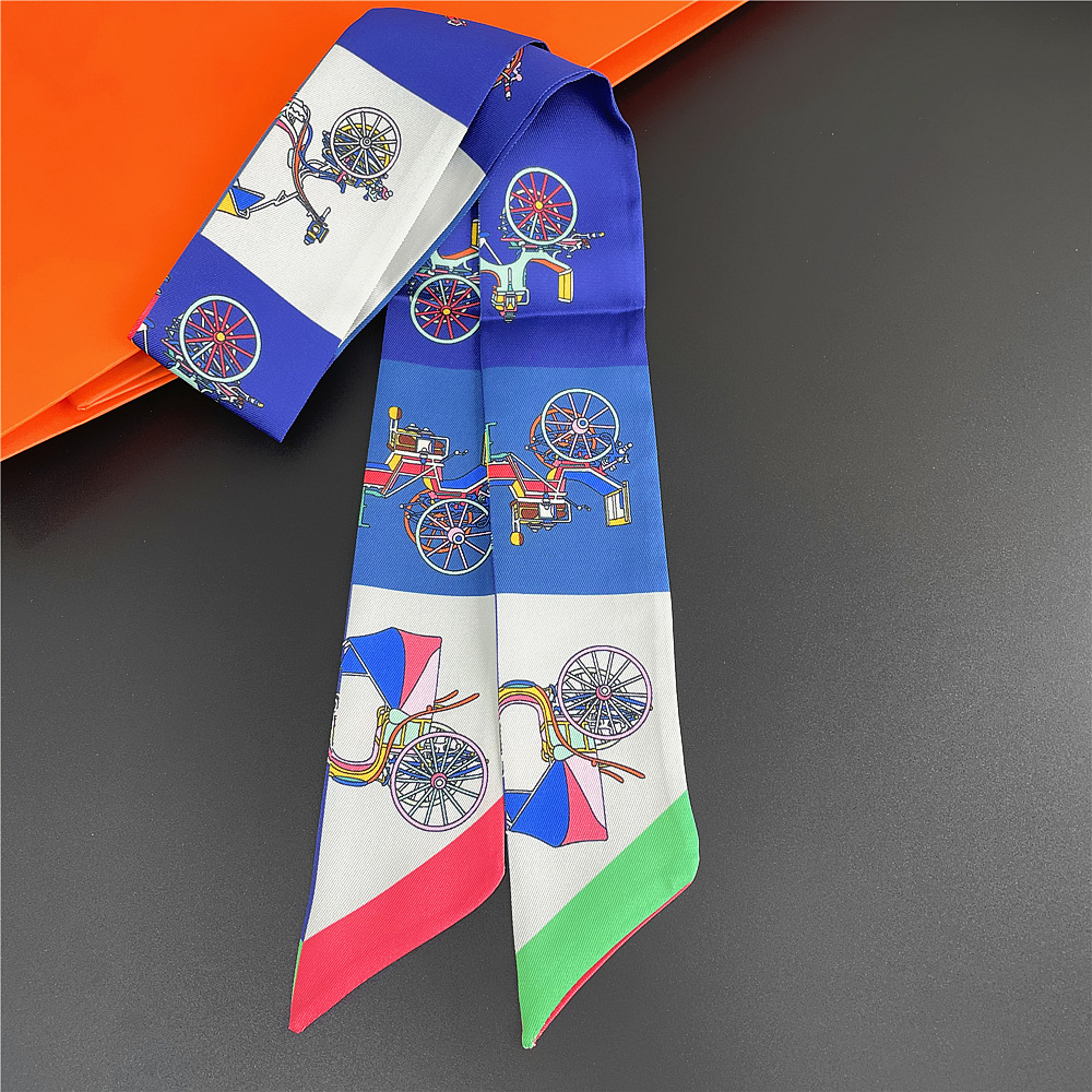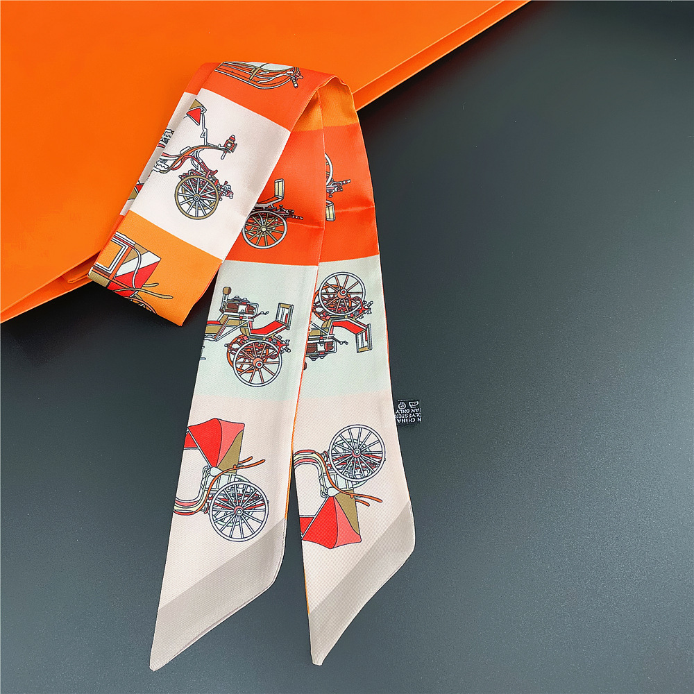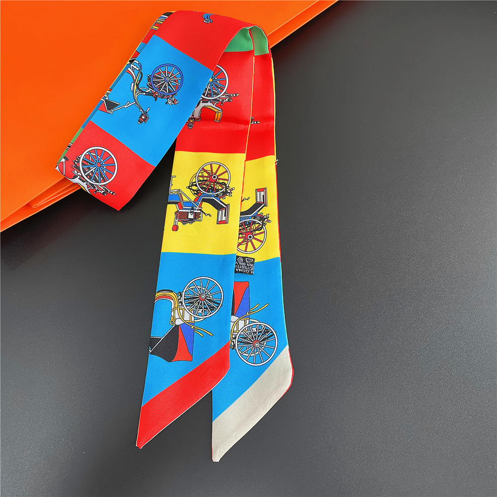 오리지널 H의 작은 실크 스카프 캐리지 솔리테어 포장 가방 타이 백 핸들 긴 리본 실크 헤어 벨트 스카프 고급