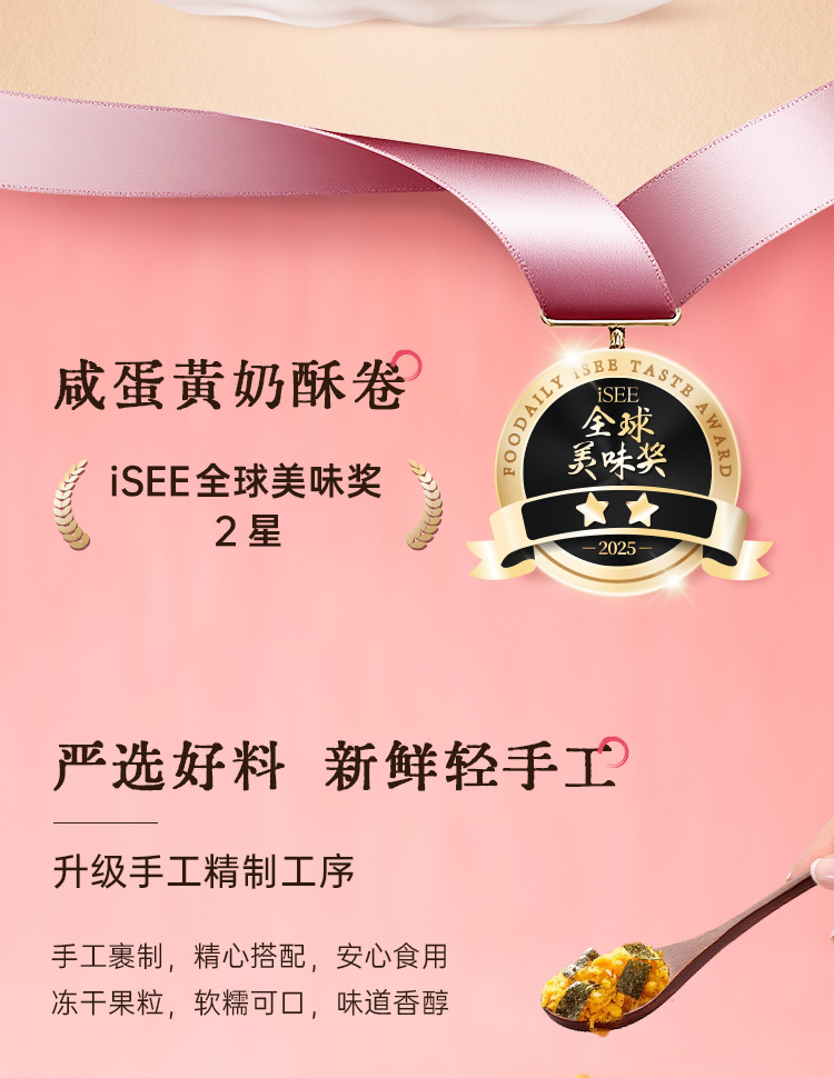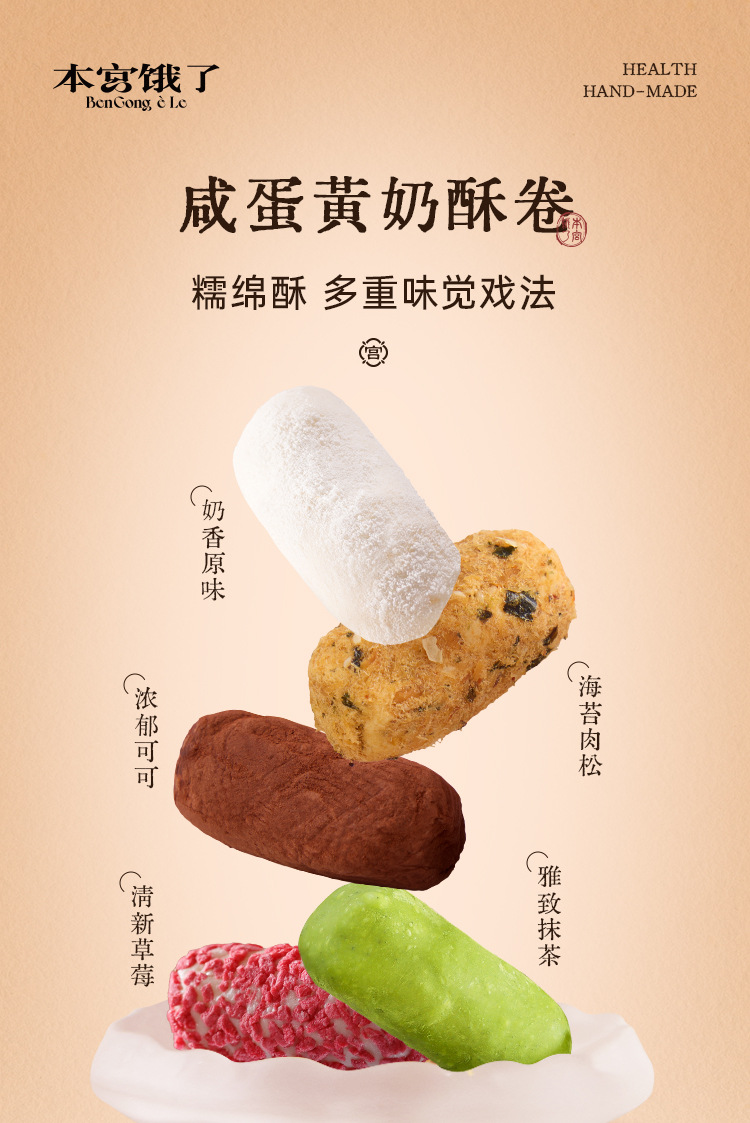 소스 공장 소 롤 솔질 수플레롤 소금에 절인 달걀 노른자 달걀 롤 눈송이 케이크 포인트 그물 레드 스낵 도매 OEM스토어 가기