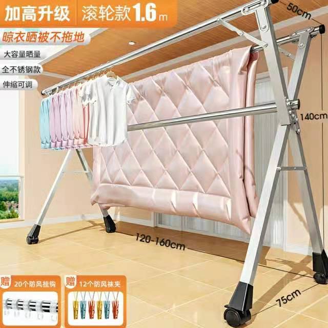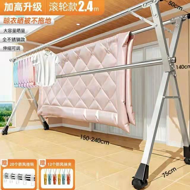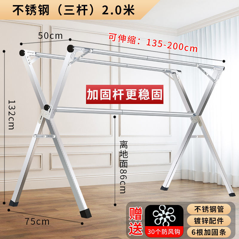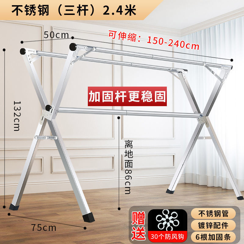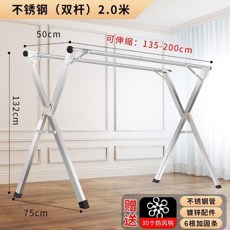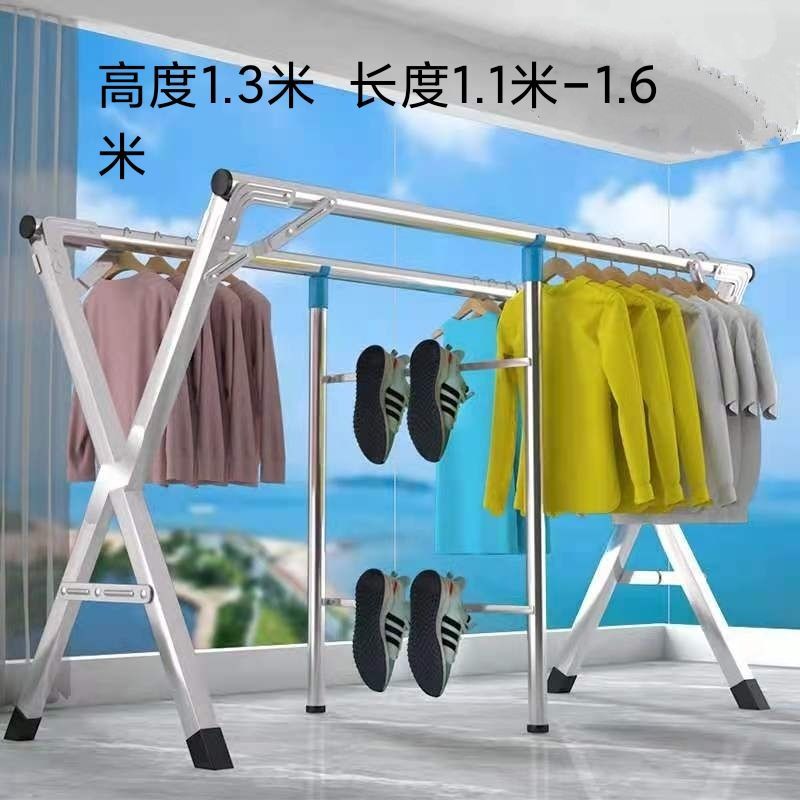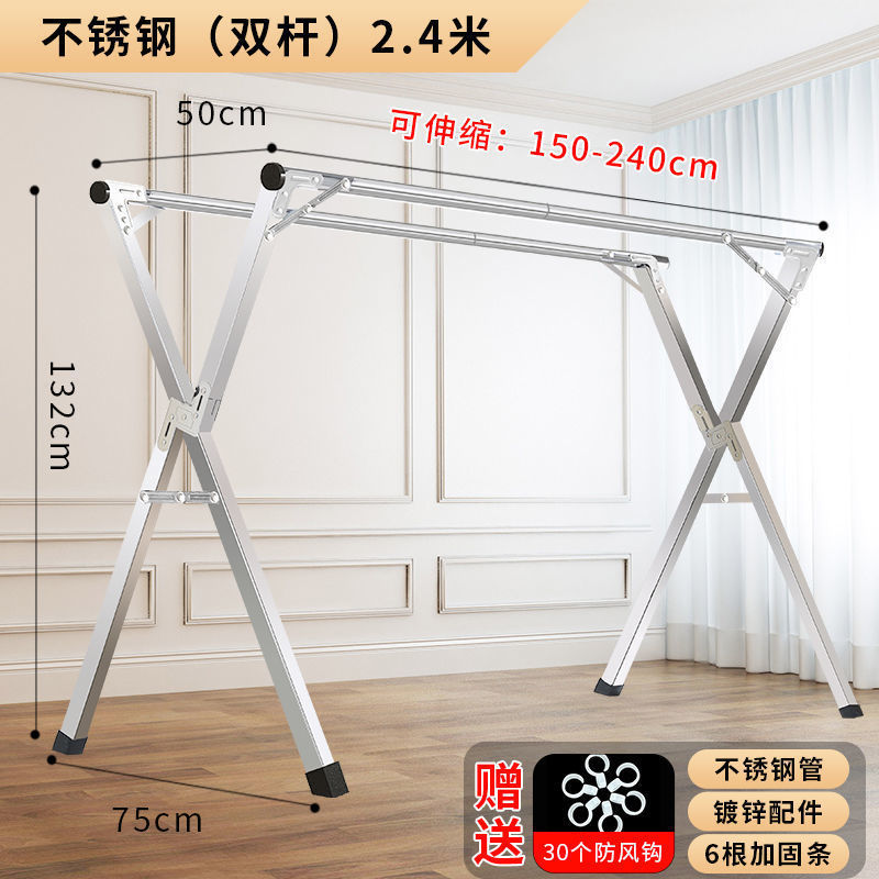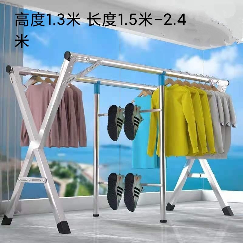 건조 랙 스테인레스 스틸 X 형 가정용 발코니 접이식 바닥 걸이 간단한 야외 더블 로드 텔레스코픽 건조 랙 공장스토어 가기