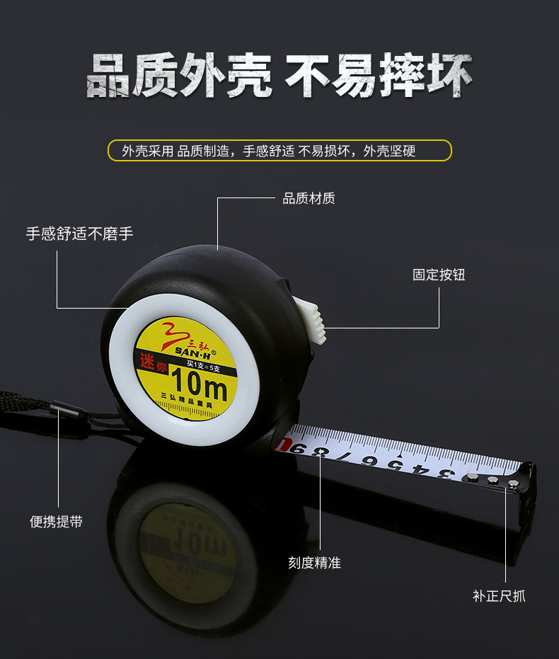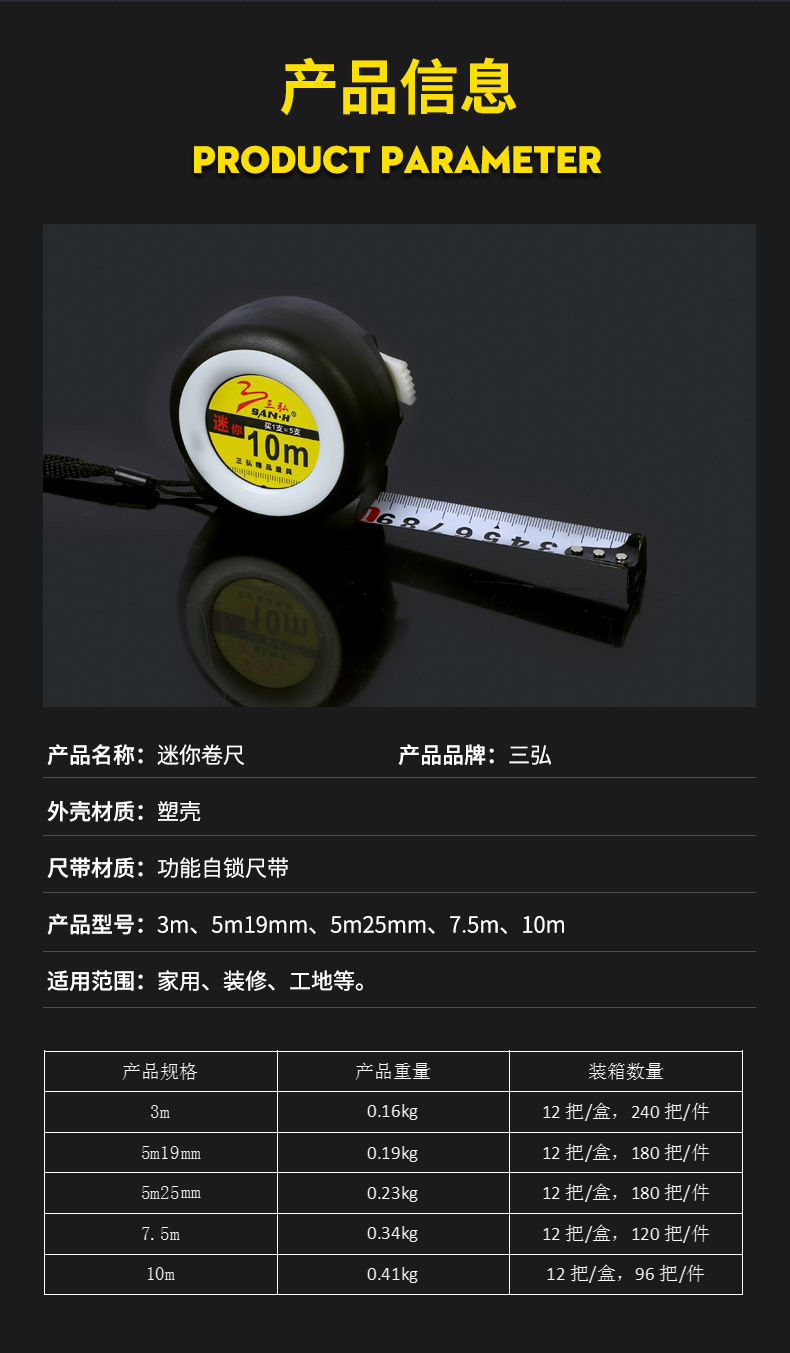 공장 재고 미니 줄자 자동 잠금 강철 줄자 3 미터 5 미터 7.5 미터 10 미터 목수 측정 줄자스토어 가기