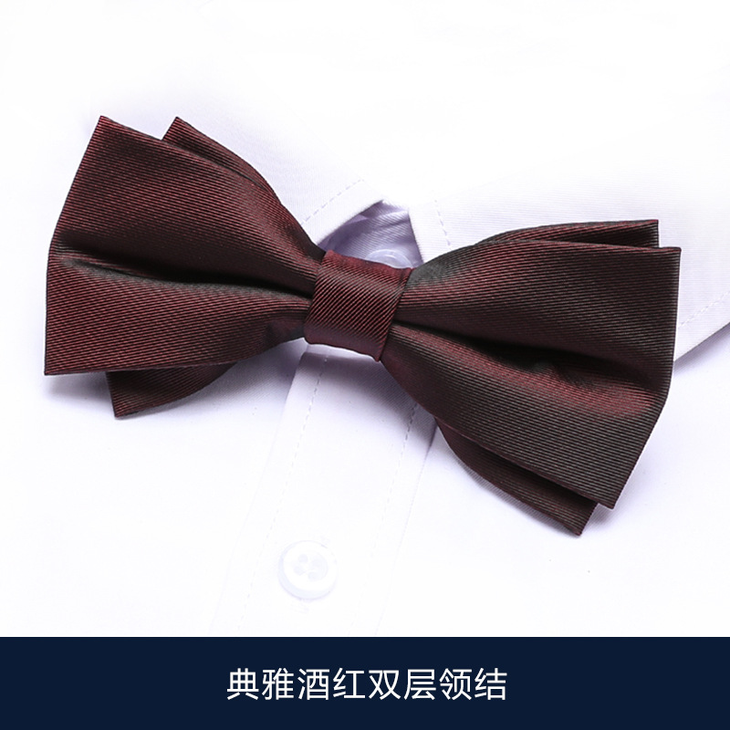 • 우아한 버건디 더블 레이어 나비 넥타이