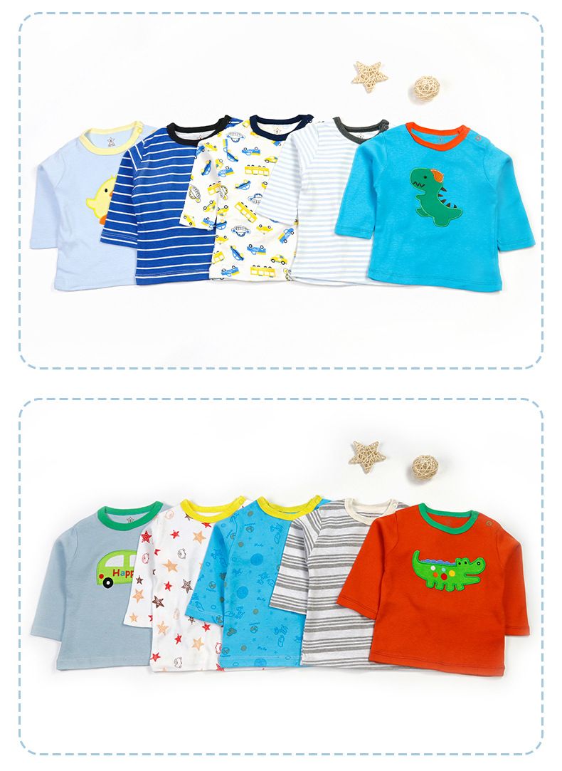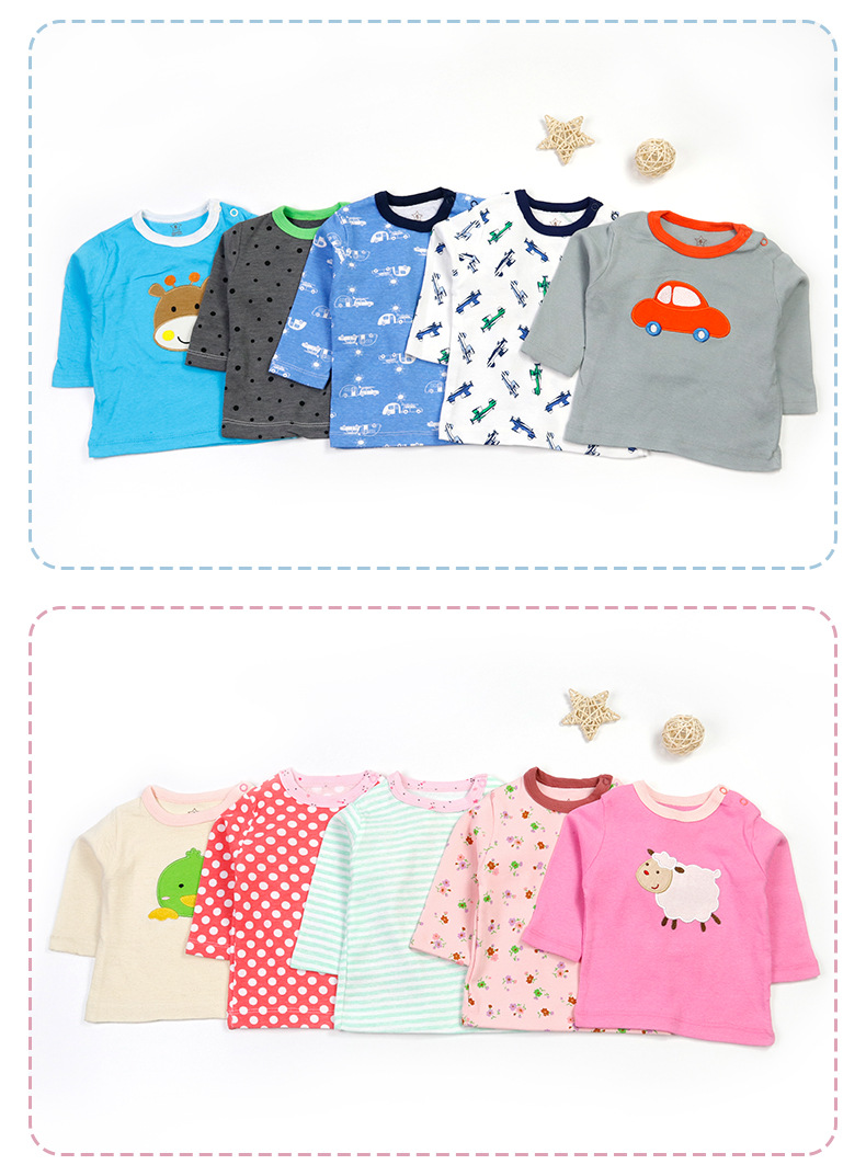 국경 대외 무역 도매 2024 유럽과 미국의 봄, 여름 새로운 스타일 소년과 소녀 라운드 넥 만화 아기 긴팔 티셔츠 아동 의류스토어 가기