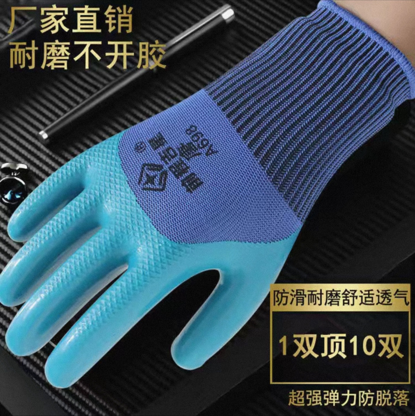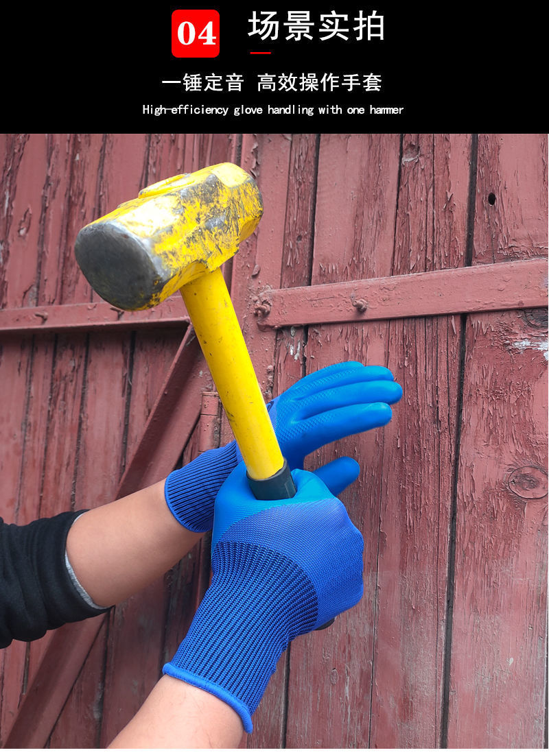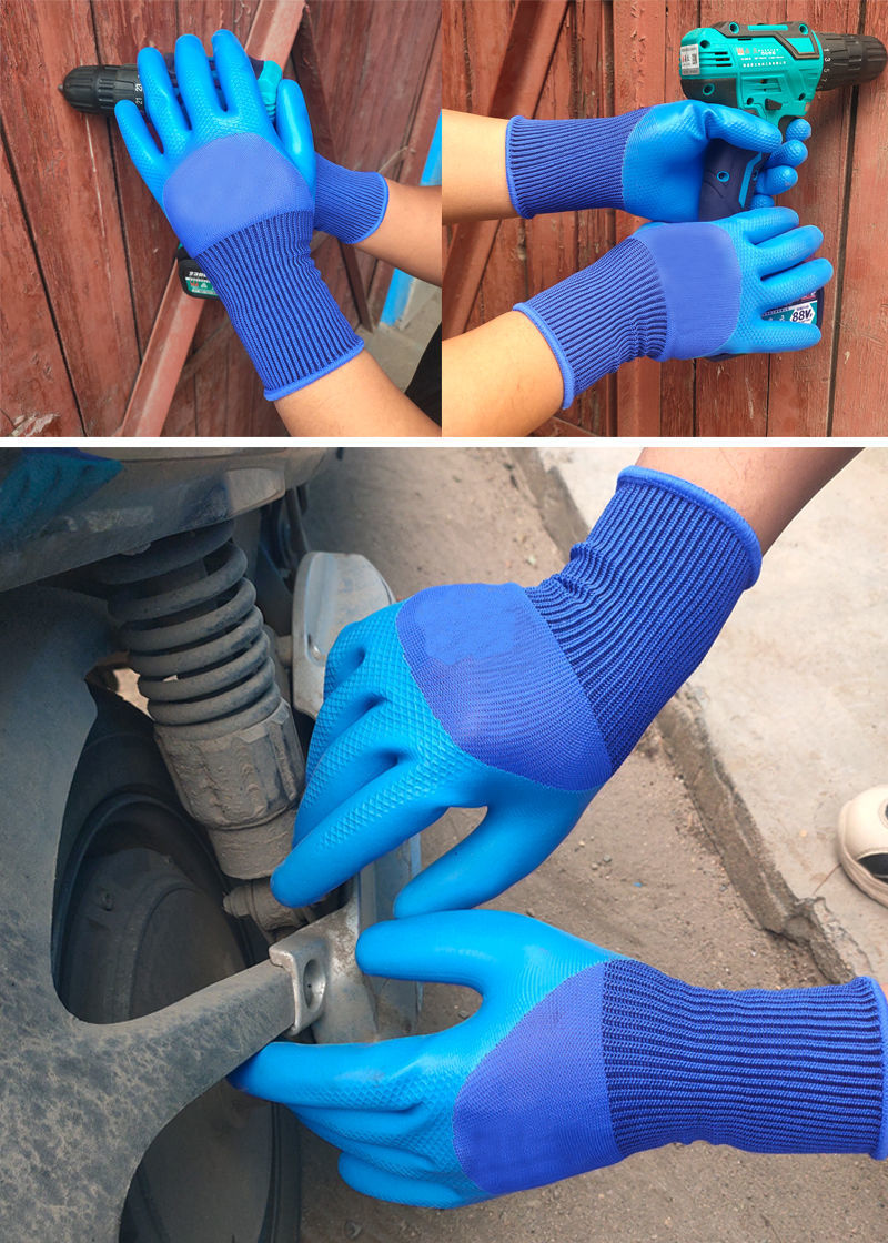 라텍스 고무 엠보싱 노동 장갑 작업 도매 내마모성 디핑 방지 오일 방수 절단 방지 사이트 용품스토어 가기