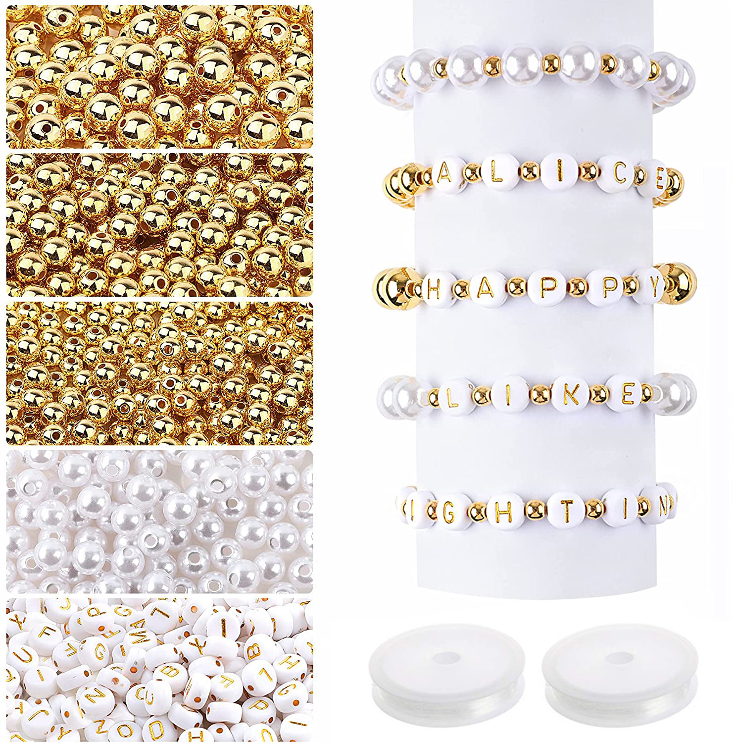 1800pc CCB 구슬 4-6mm 원형 스페이서 구슬 황금 편지 구슬 느슨한 구슬 DIY 팔찌 목걸이 만들기