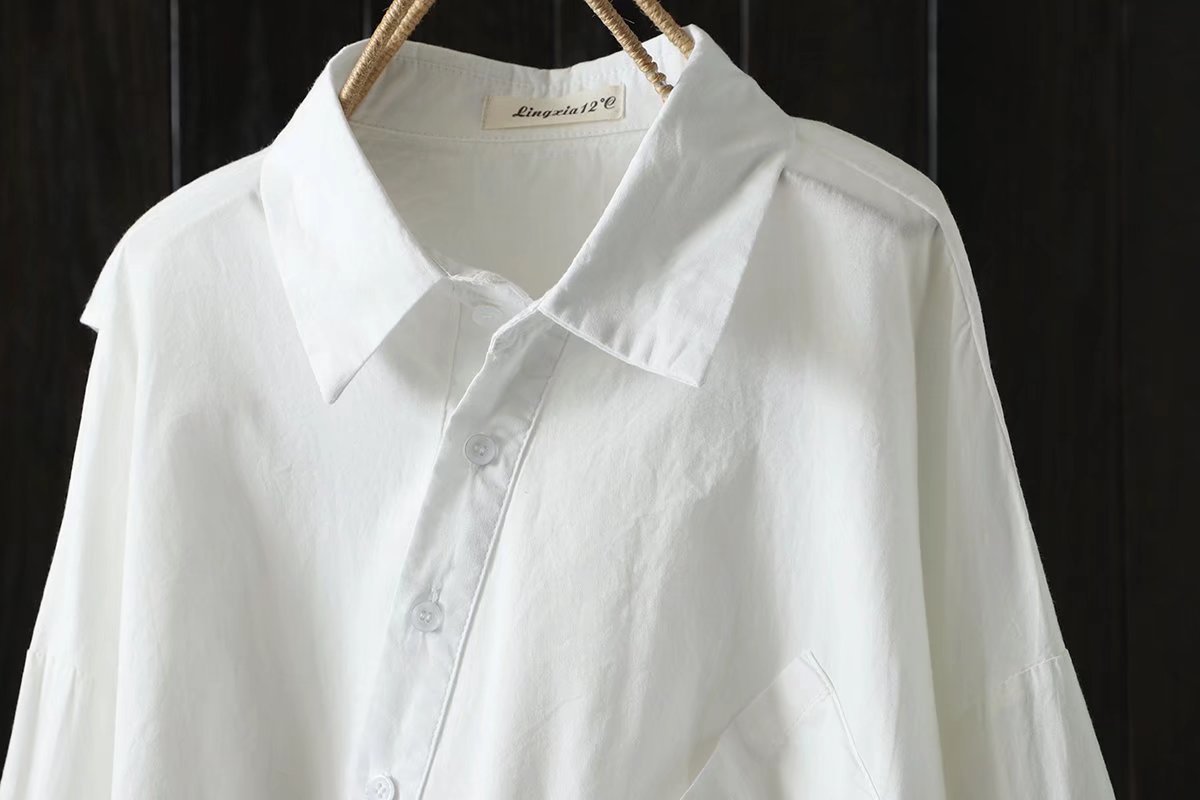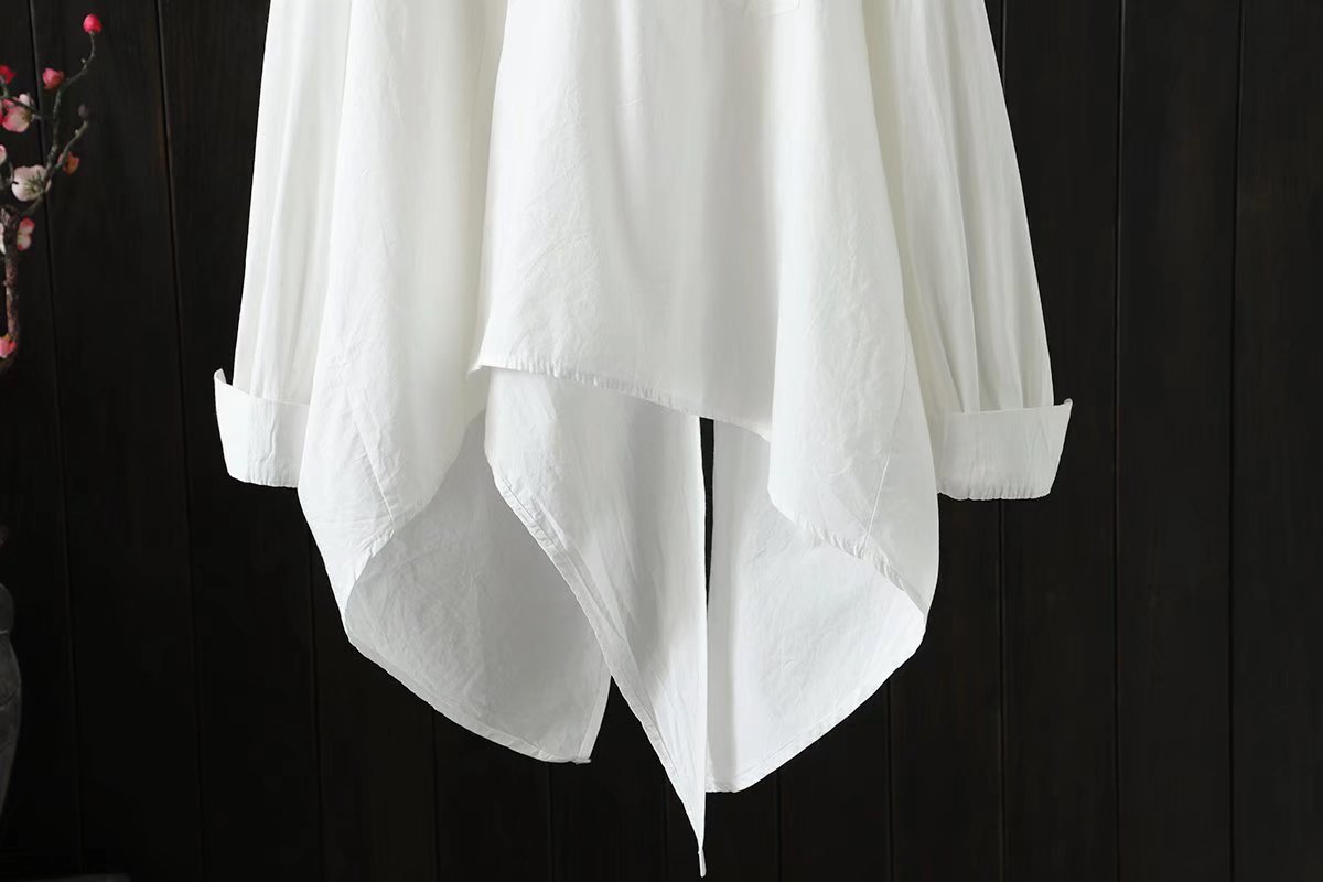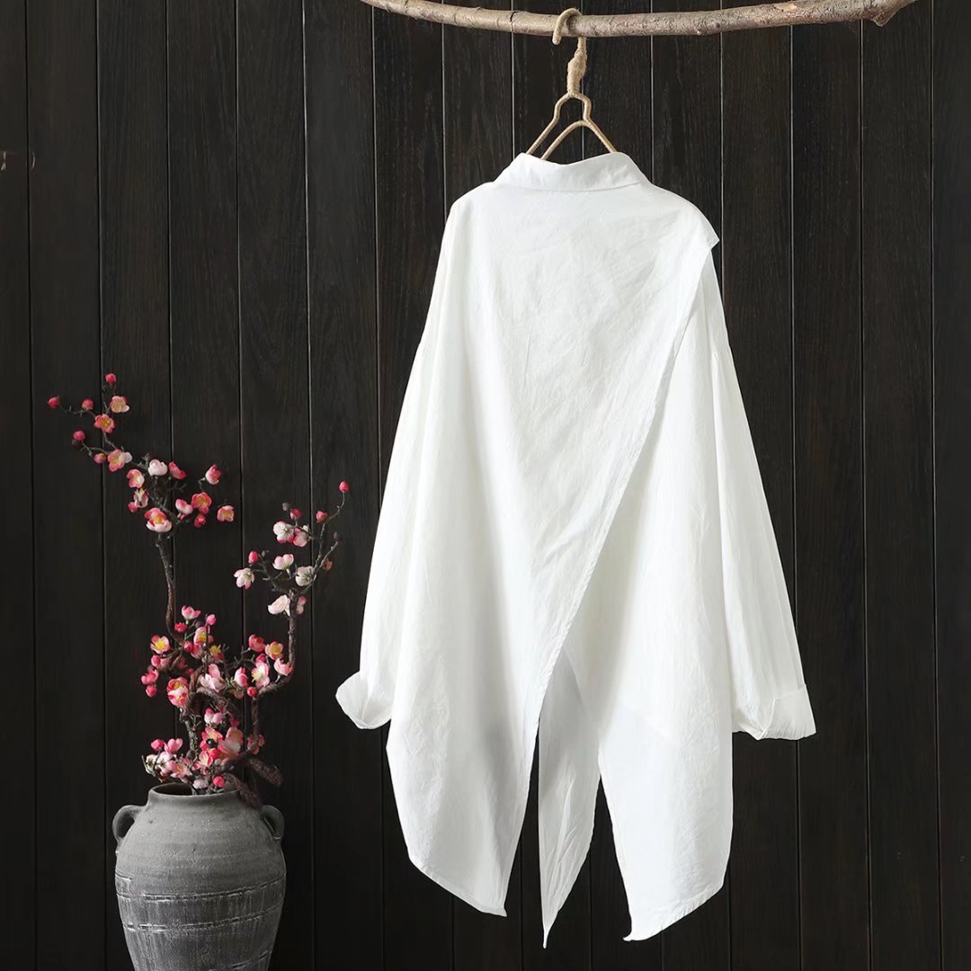 긴 소매 셔츠 봄과 가을 새로운 아티스트 스타일 불규칙한 단색 캐주얼 중간 길이 셔츠 여성의 92036스토어 가기