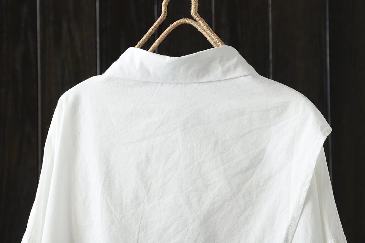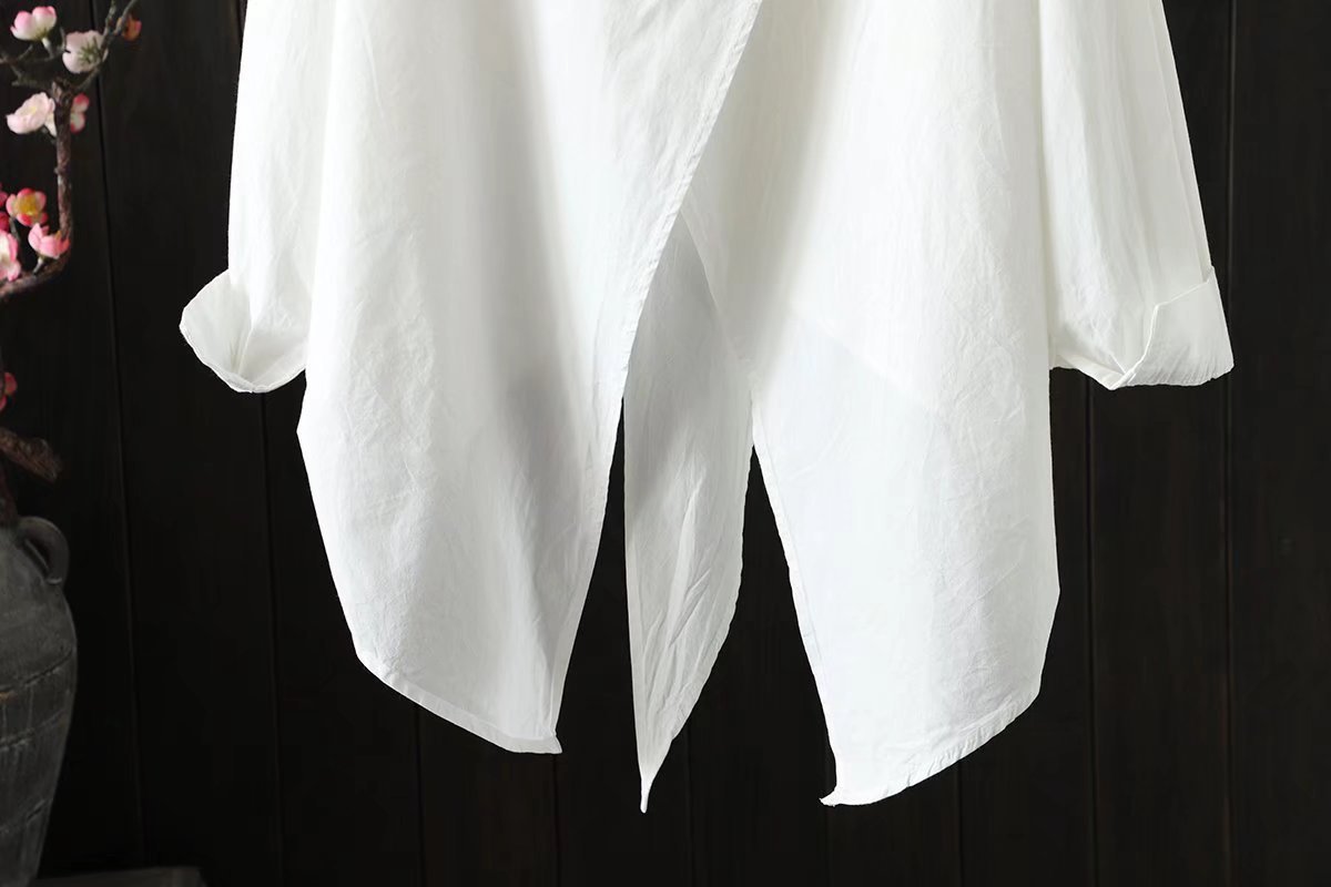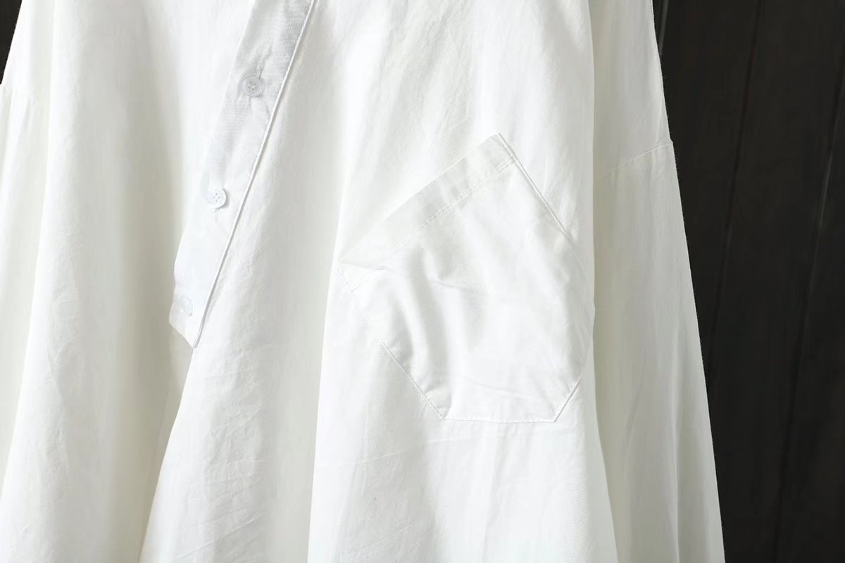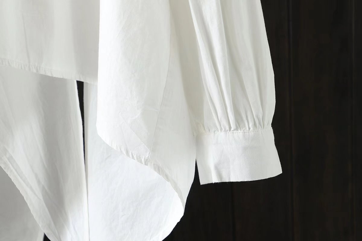 긴 소매 셔츠 봄과 가을 새로운 아티스트 스타일 불규칙한 단색 캐주얼 중간 길이 셔츠 여성의 92036스토어 가기