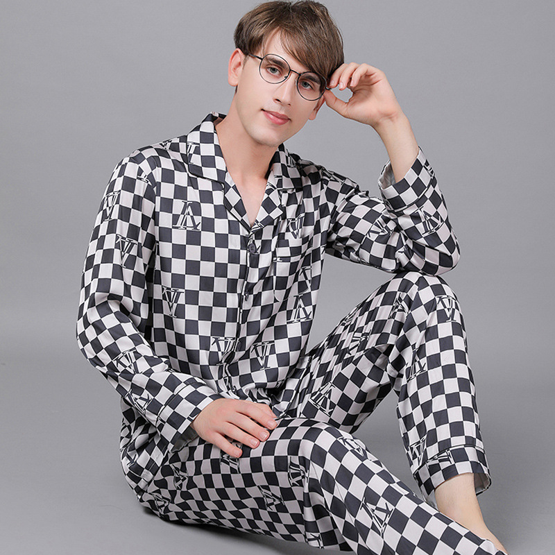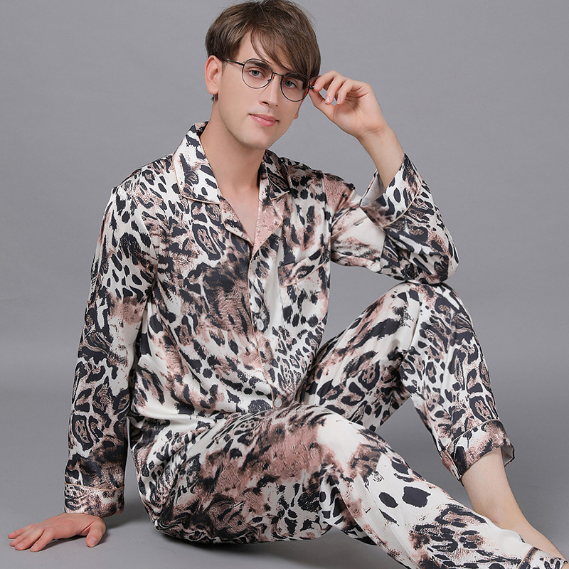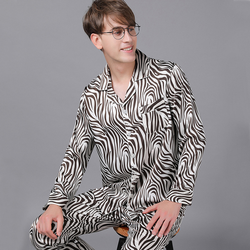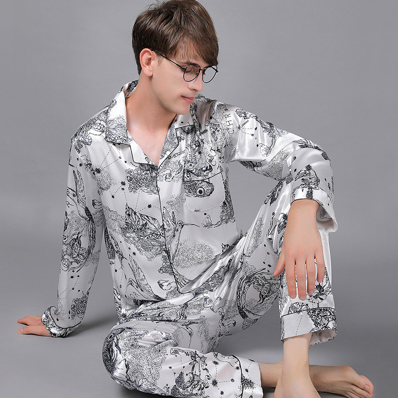 공장 직접 봄과 가을 남자의 긴 소매 바지 잠옷 세트 여름 편안한 실크 인쇄 얇은 가정 옷
