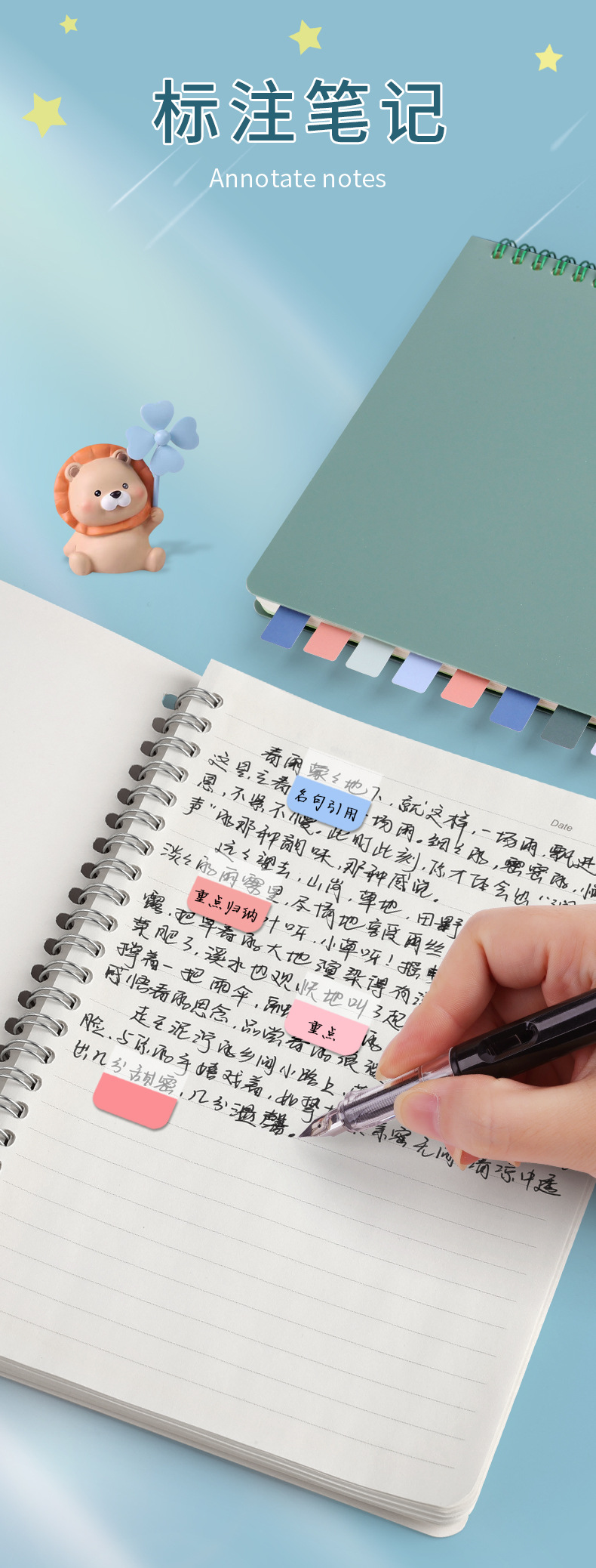 포스트잇 노트 느슨한 잎 책 종이 인덱스 라벨 스티커 분류 지시 스티커 끈적한 강한 책갈피 스티커 노트