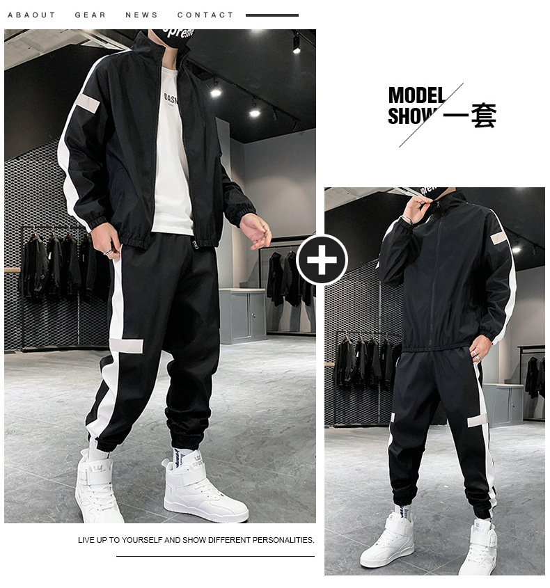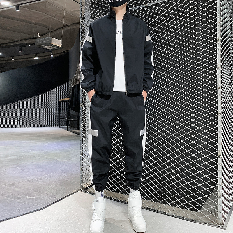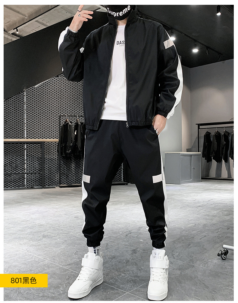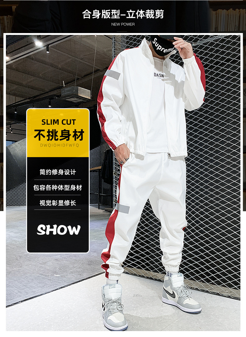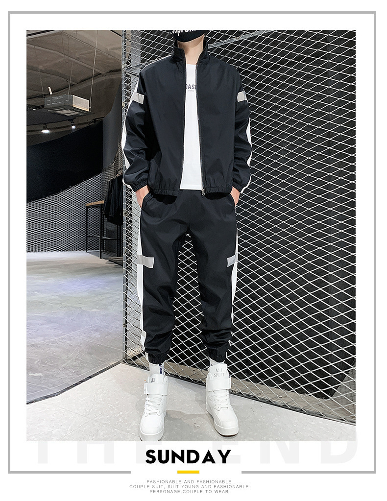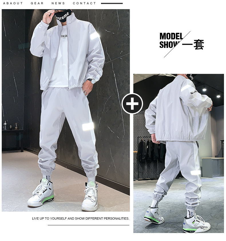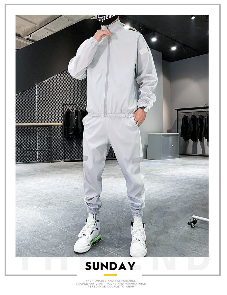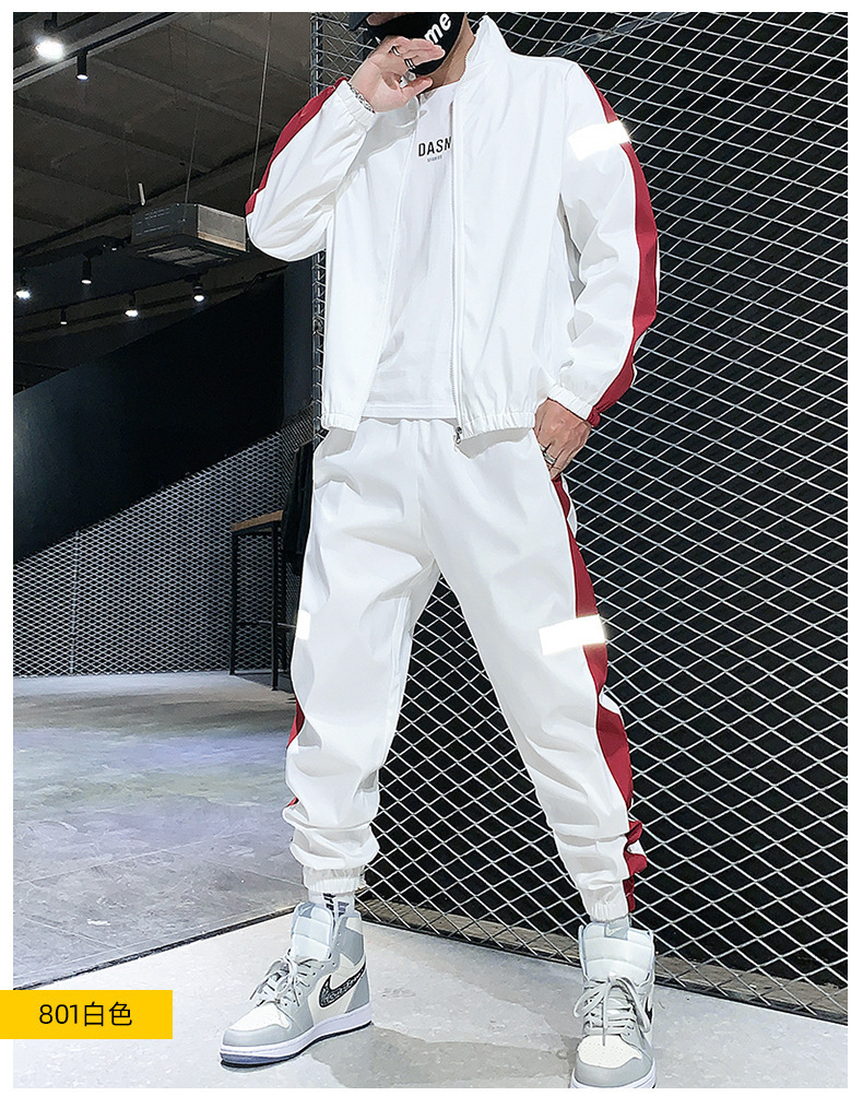 레저 스포츠 카디건 세트 남성 가을 반사 스트립 세트 판매 볼륨 저가격 해외 무역 핫 단체 구매 인쇄스토어 가기