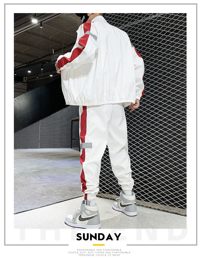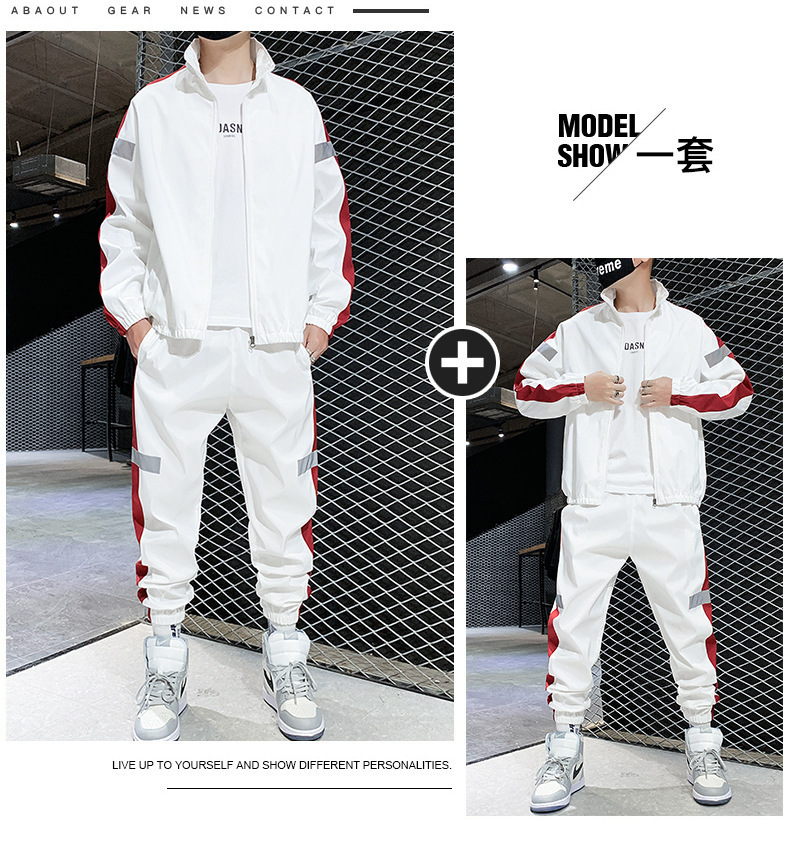레저 스포츠 카디건 세트 남성 가을 반사 스트립 세트 판매 볼륨 저가격 해외 무역 핫 단체 구매 인쇄