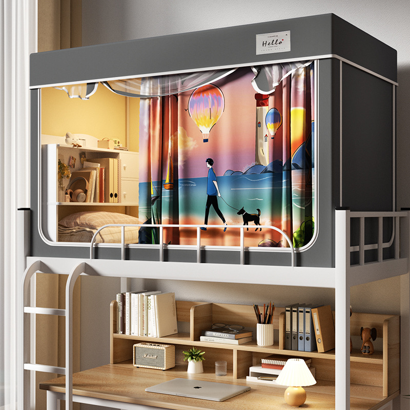 브라켓과 통합된 강한 차양 침대 커튼 모기장 대학생 기숙사 먼지 탑 침실 상하 수풀 두꺼운 침대 커튼