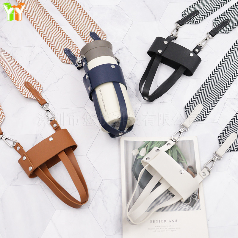 现货水壶背带背包带户外出行自行车辅助配件PU皮革水壶扣水杯套