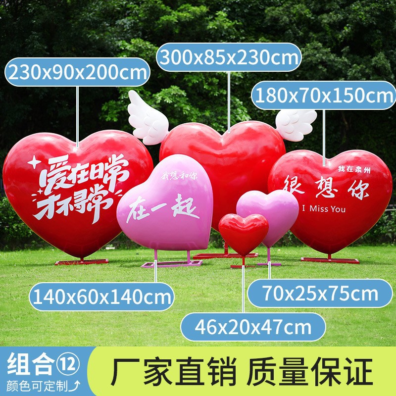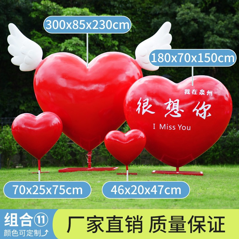대형 사랑 장식품, 유리섬유 하트 모양 사랑 조각상, 웨딩 인터넷 연예인 사랑 모형, 정원 잔디 장식