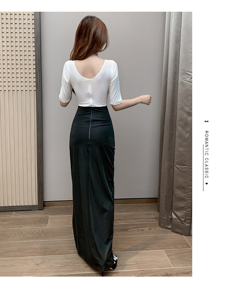2025 가을 겨울 신상 프렌치 스타일 섹시한 클럽 드레스 롱 드레스 투피스 슬림핏 엄마님 스타일 힙허깅 드레스