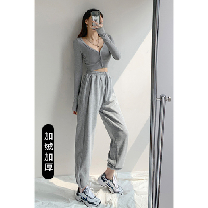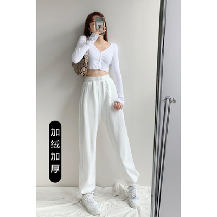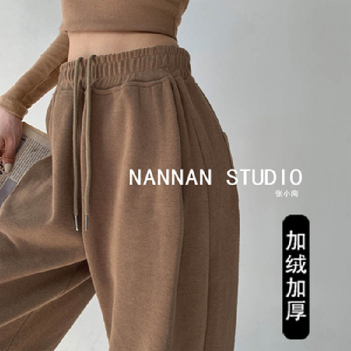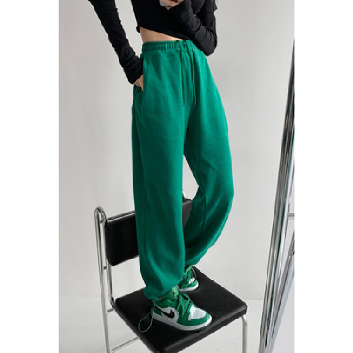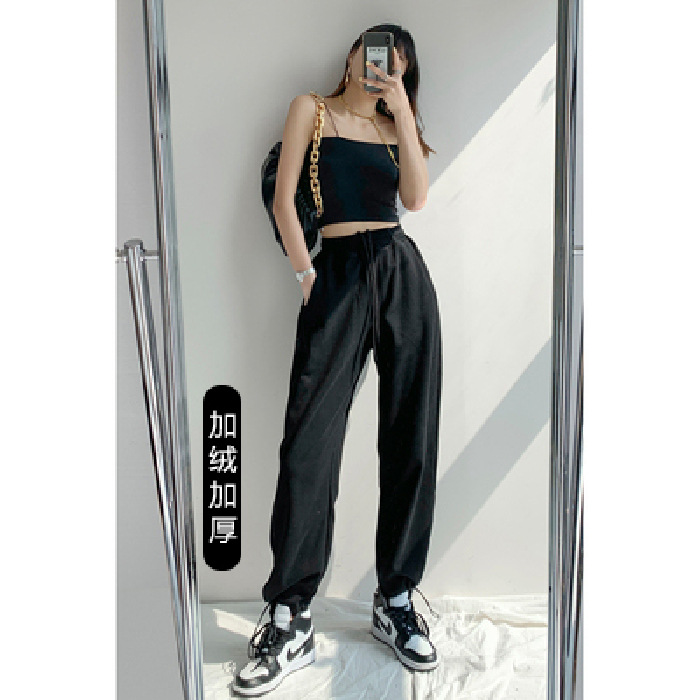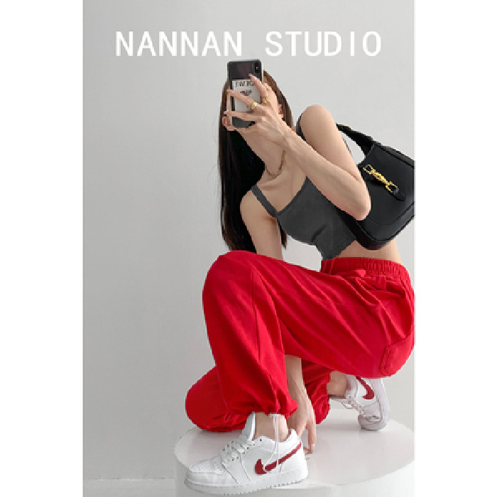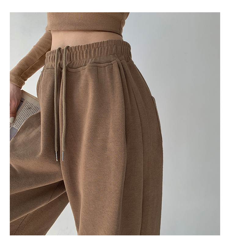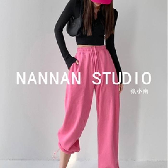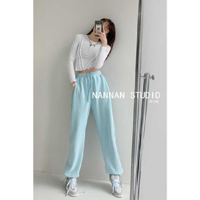 [니트 코튼] 유럽 및 미국 스타일 스트리트 스포츠 바지 여성용 2023 봄 가을 아우터 느슨한 드로우 스트링 발목 바지 트렌디 한 스웨트 팬츠스토어 가기