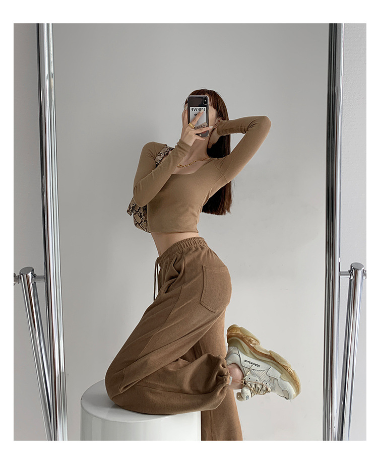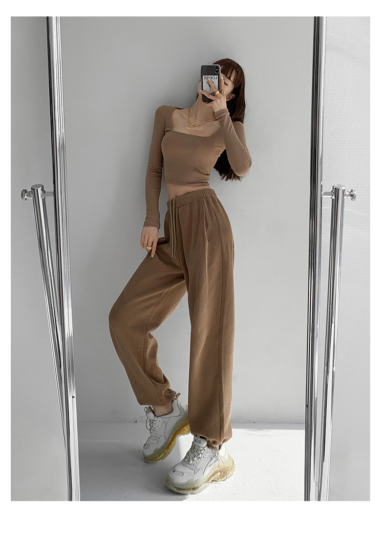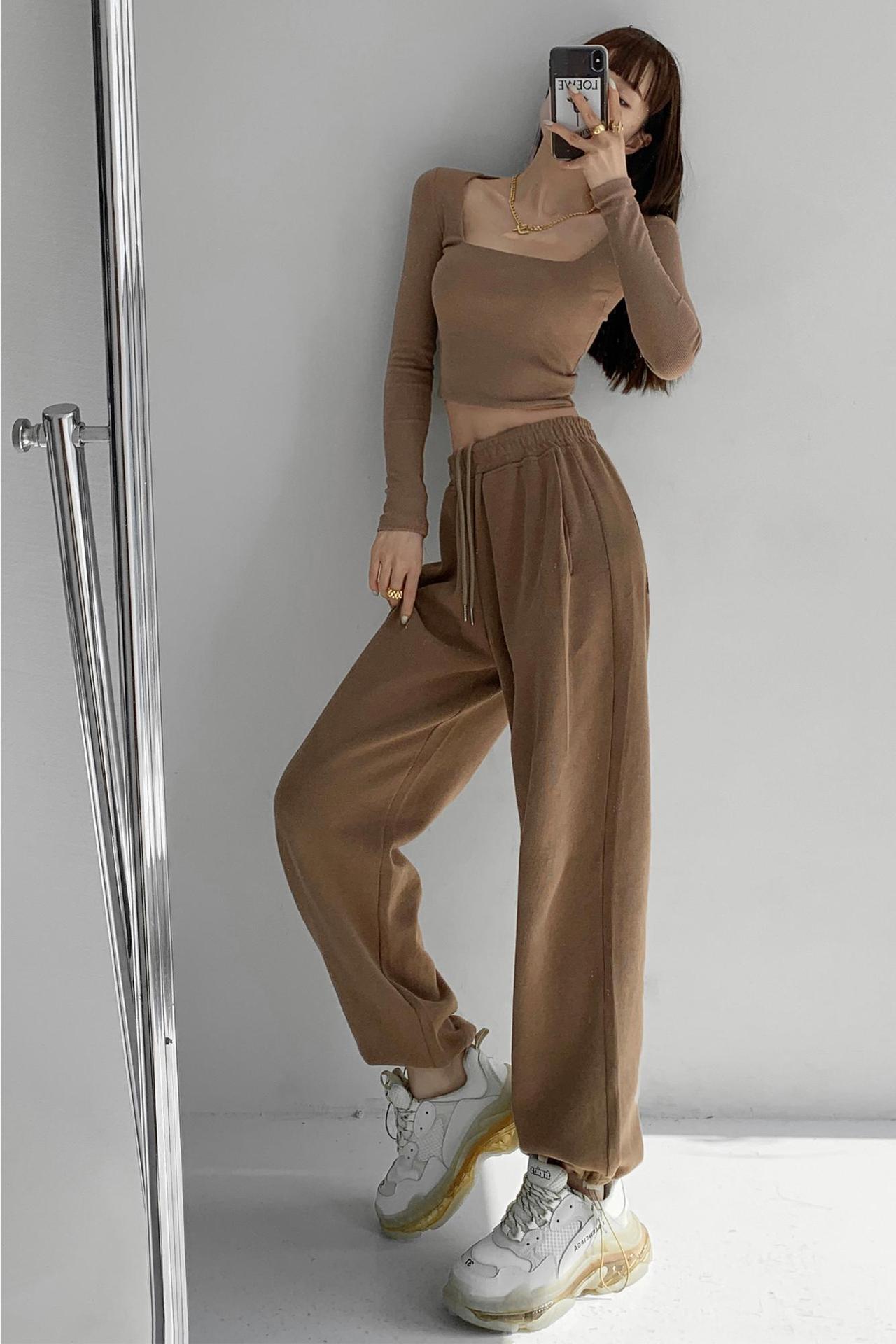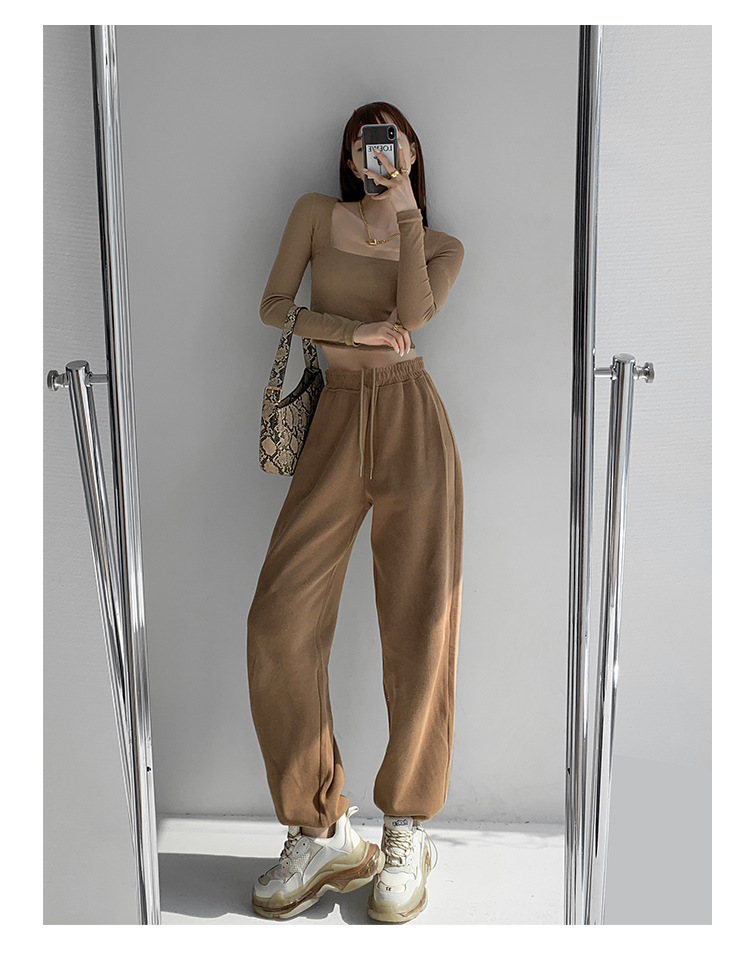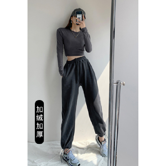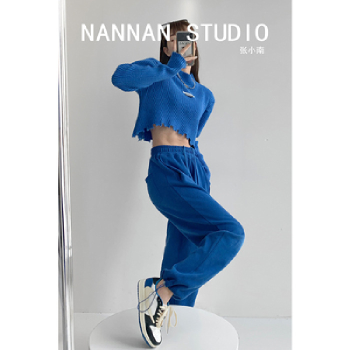 [니트 코튼] 유럽 및 미국 스타일 스트리트 스포츠 바지 여성용 2023 봄 가을 아우터 느슨한 드로우 스트링 발목 바지 트렌디 한 스웨트 팬츠스토어 가기