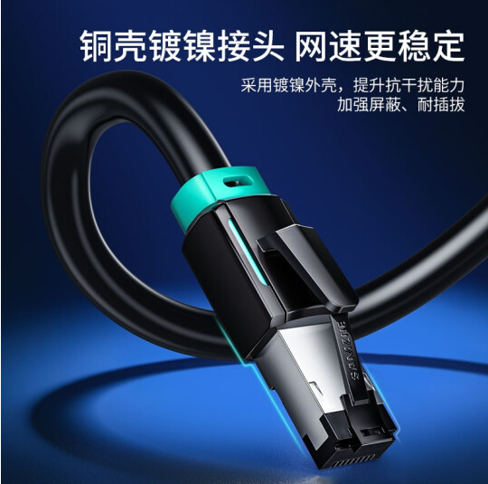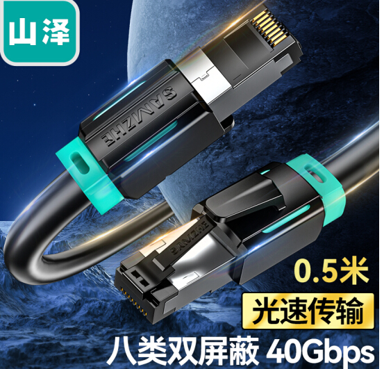 山泽八类万兆网线电竞级网络成品跳线CAT8纯铜双屏蔽8芯双绞电脑宽带连接黑色0.5米 JC8005H *1