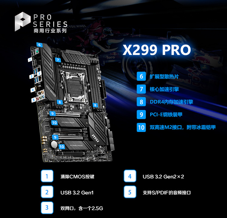 적용 워크스테이션 Microstar X299 PRO 마더 보드 (IntelX299/LGA 2066) 발열 게임