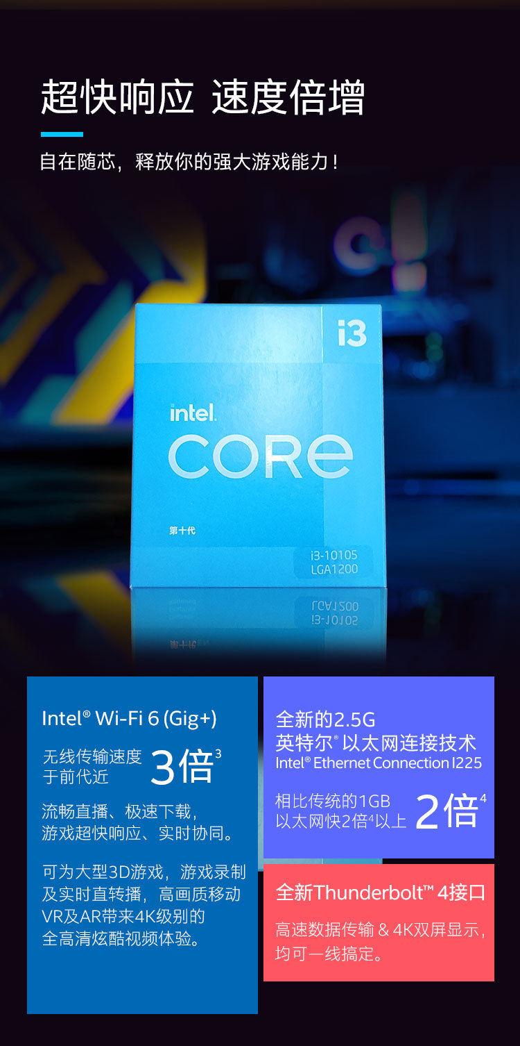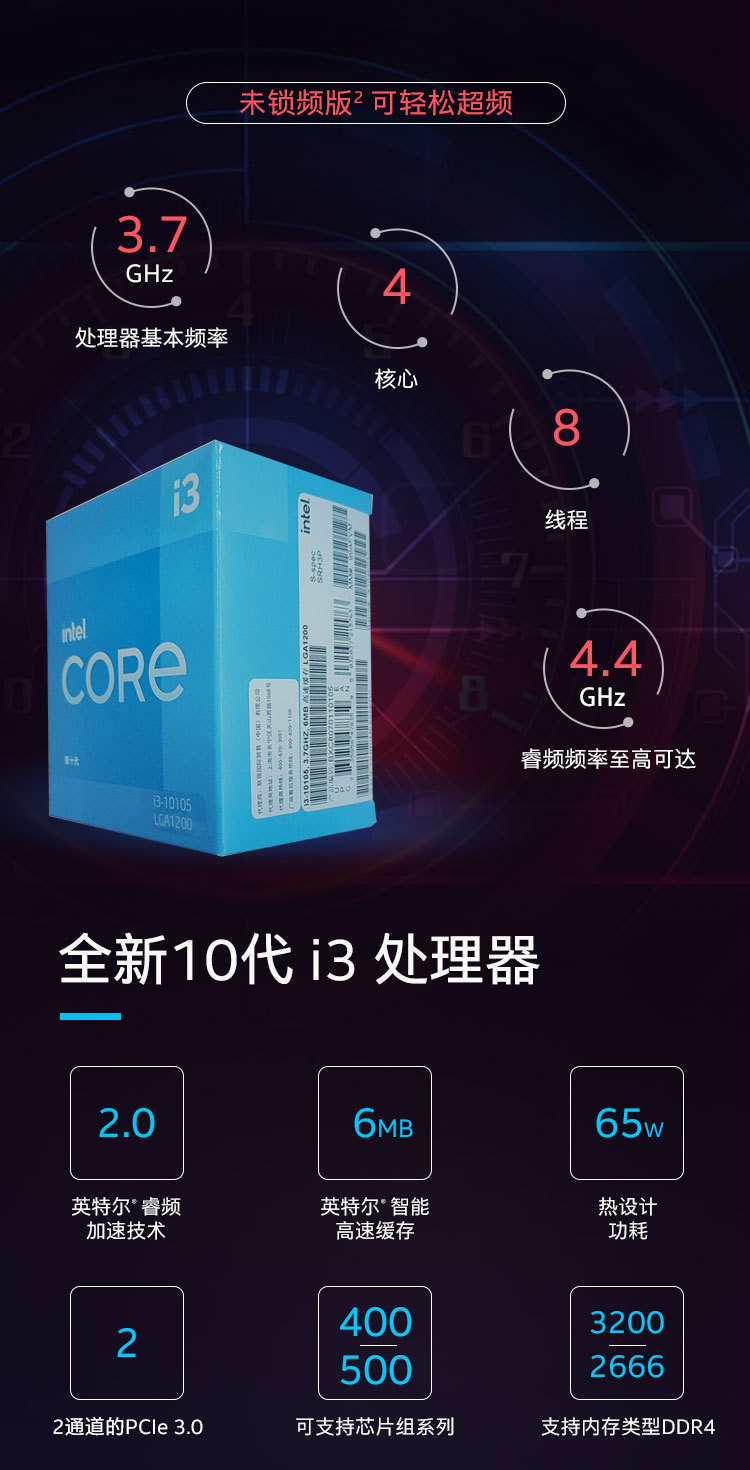 인텔 코어 i3-10105 박스 CPU 데스크탑 컴퓨터 프로세서 CPU 이산