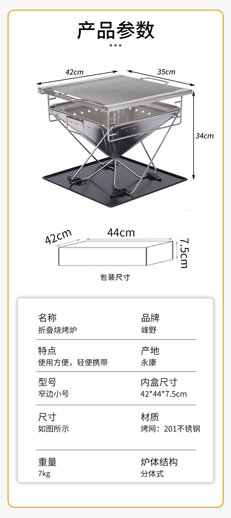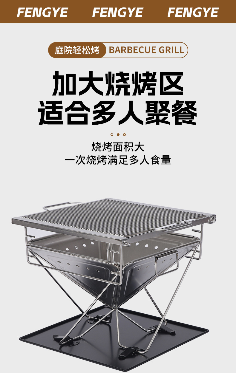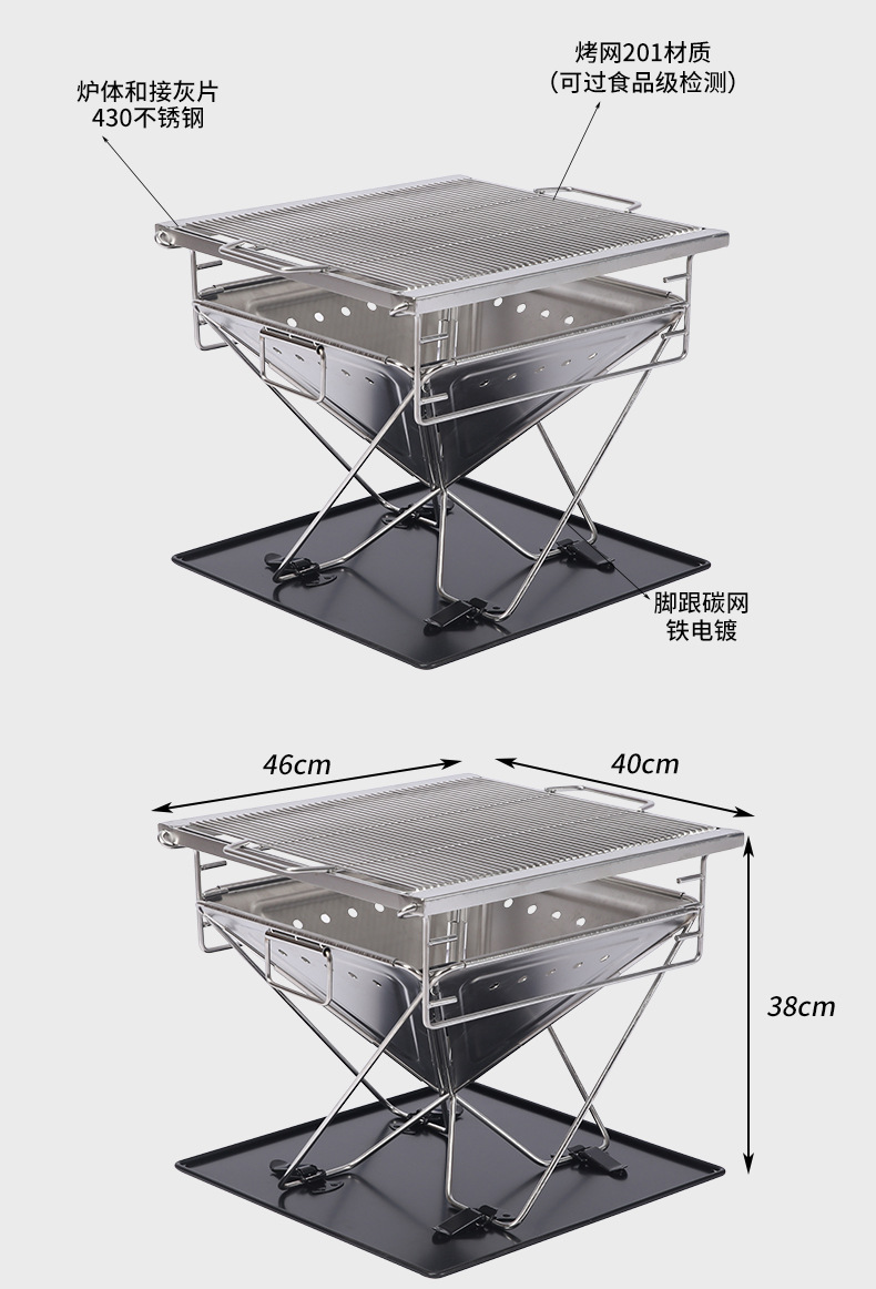 304 스테인리스 스틸 좁은 테두리 접이식 바베큐 그릴 야외 캠핑 장작 난로 캠핑 휴대용 바베큐 그릴 피크닉 난로